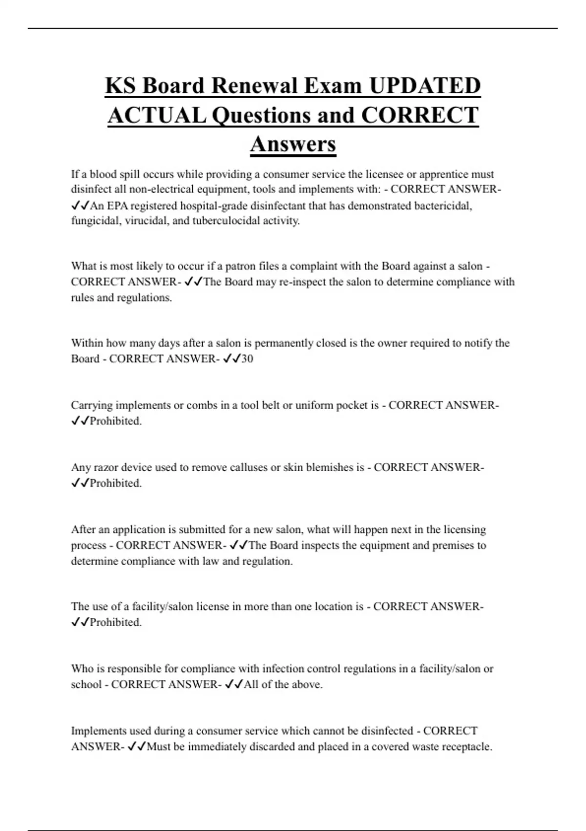 CORRECT ANSWER- ✔✔The Board may re-inspect the salon to determine compliance with