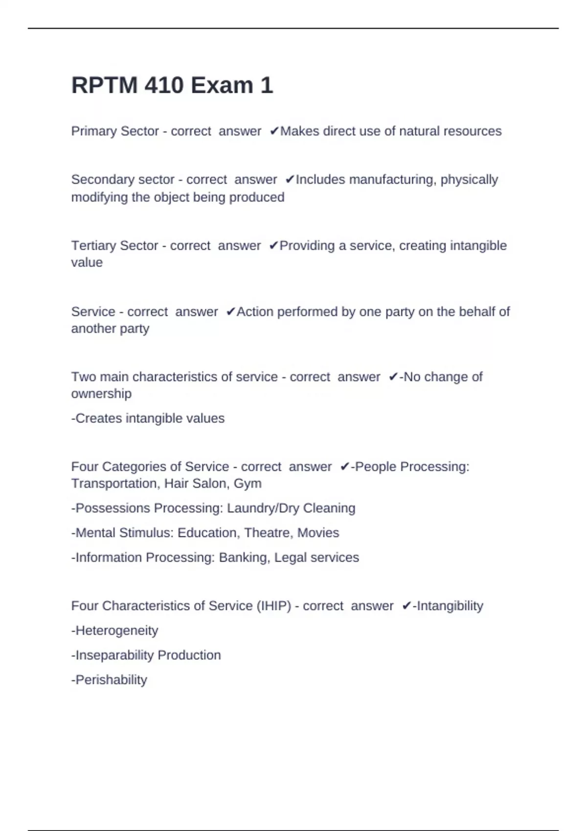 Tertiary Sector - correct answer ✔Providing a service, creating intangible