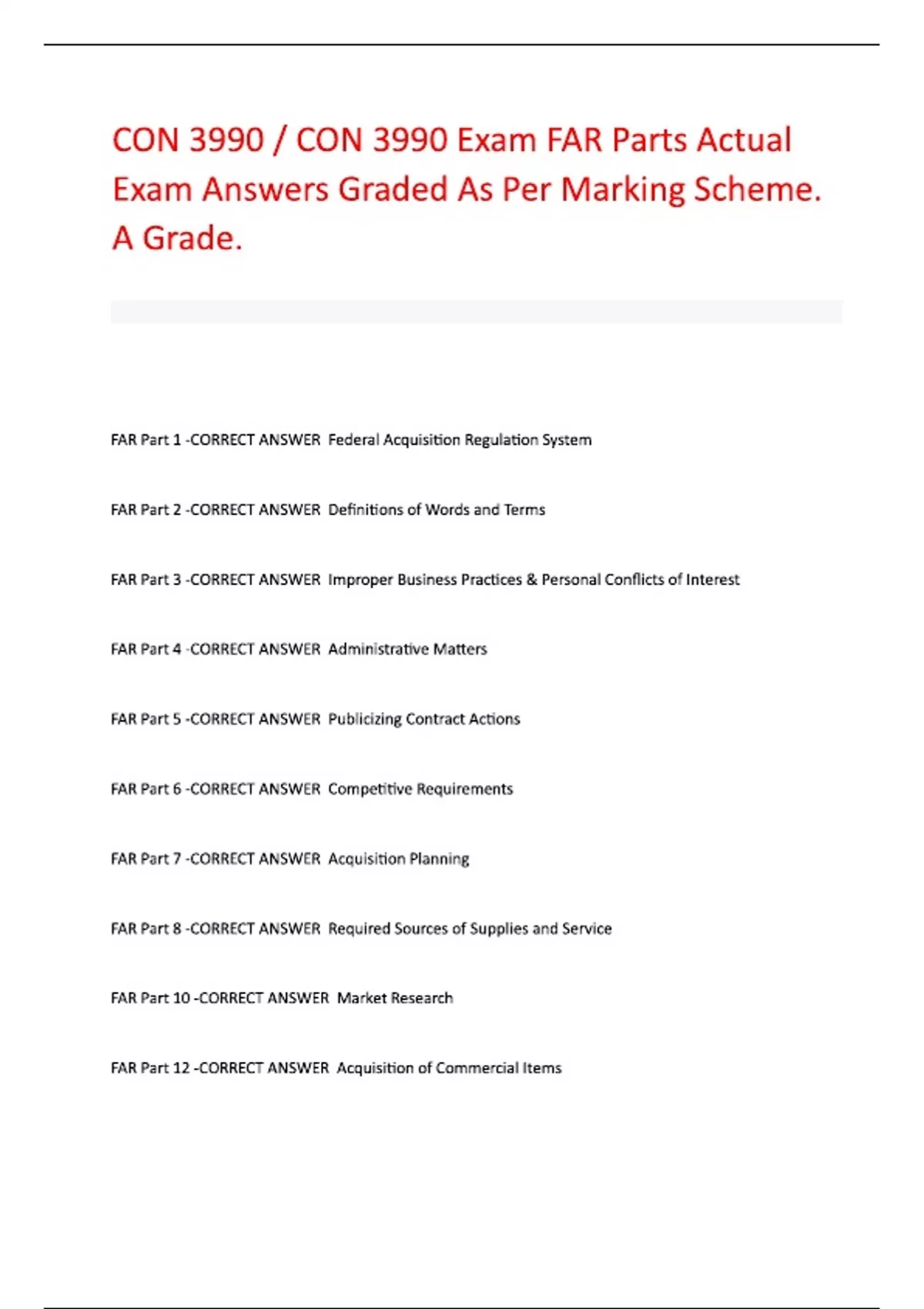 con 3990 exam far parts actual exam answers graded