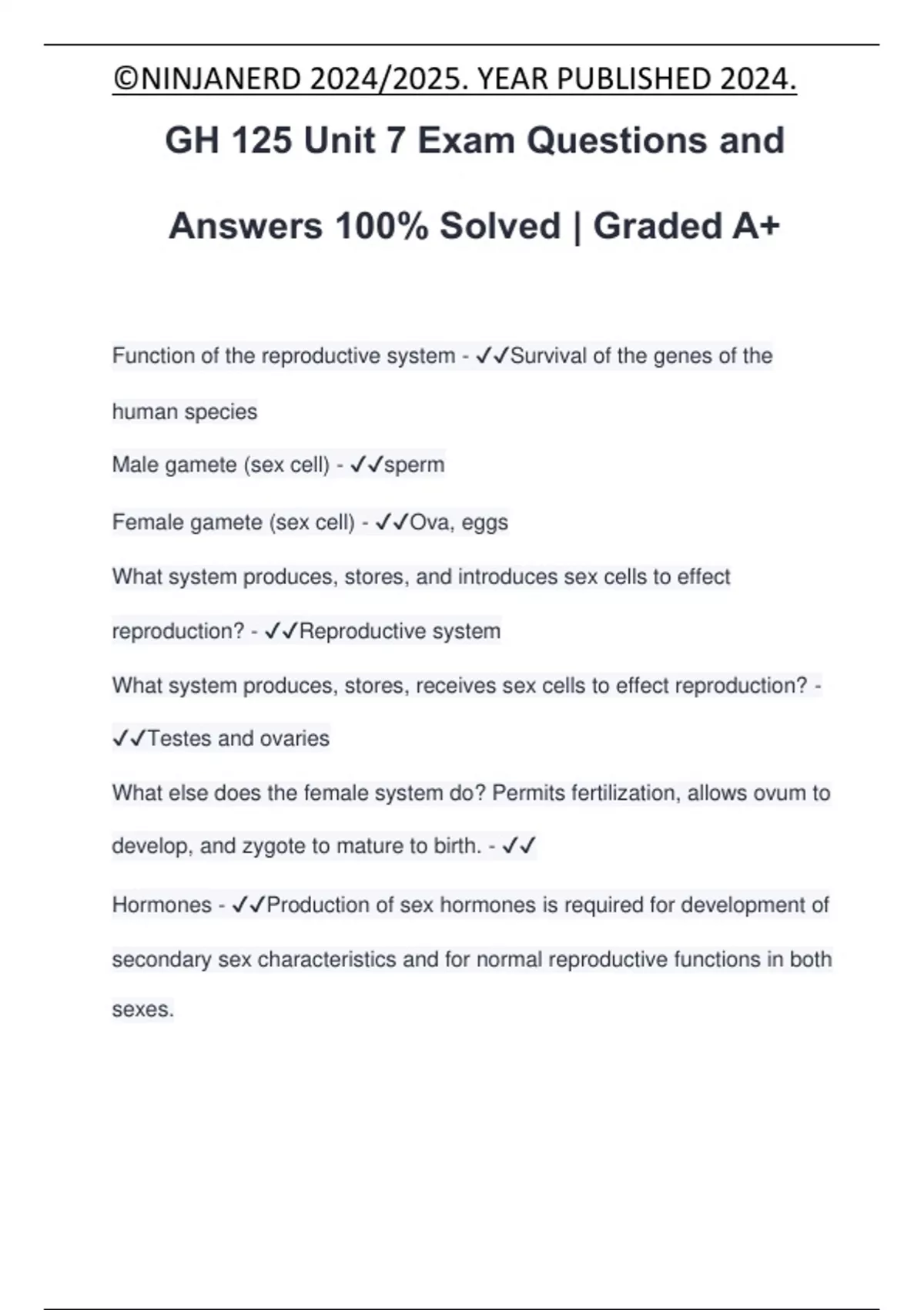 GH 125 Unit 7 Exam Questions and