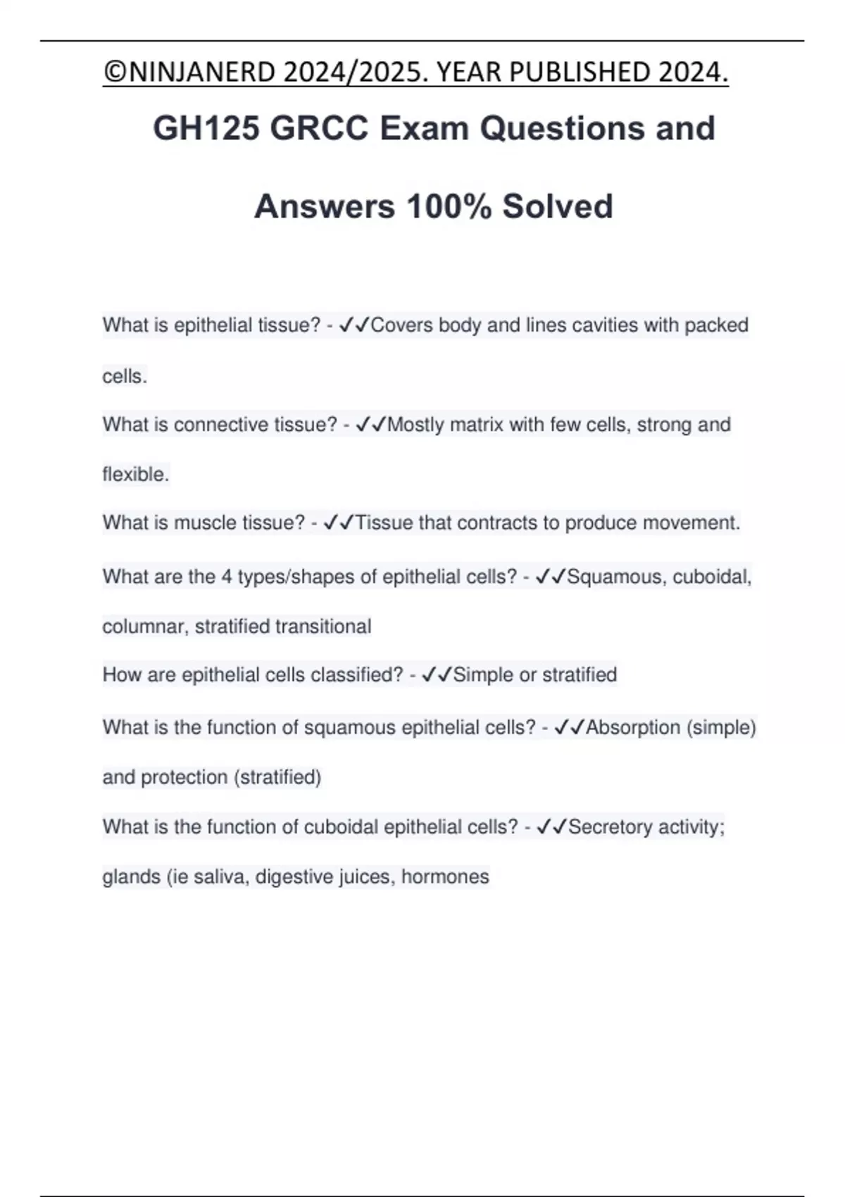 What is epithelial tissue? - ✔✔Covers body and lines cavities with packed