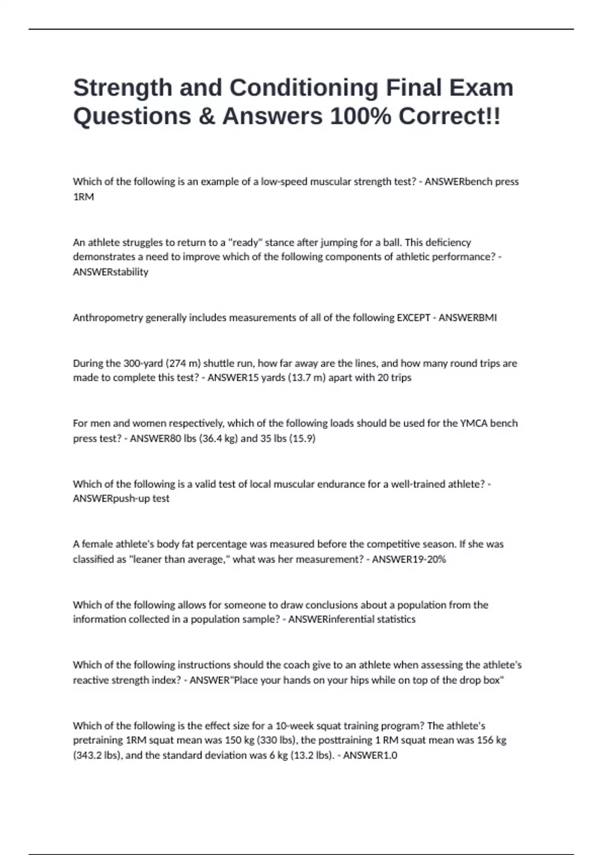 Strength and Conditioning Final Exam Questions & Answers 100% Correct!!