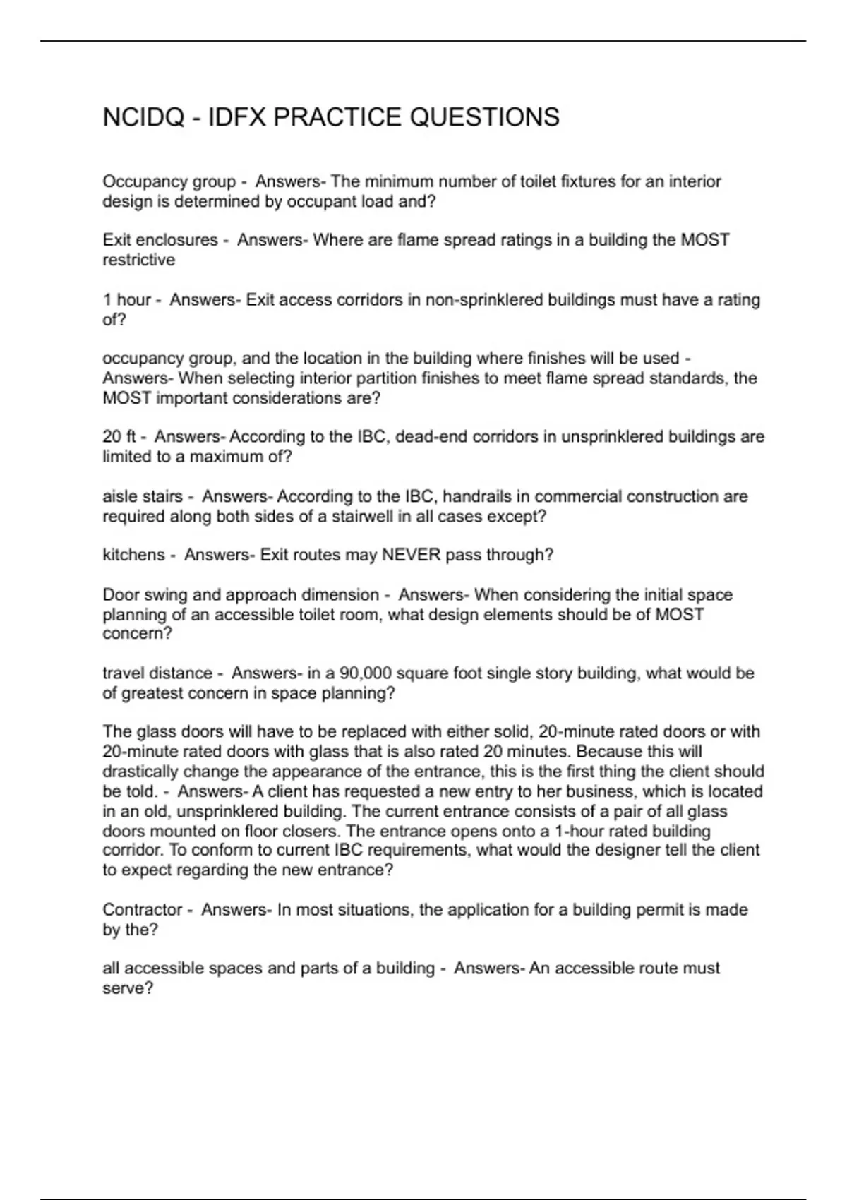 NCIDQ - IDFX PRACTICE QUESTIONS