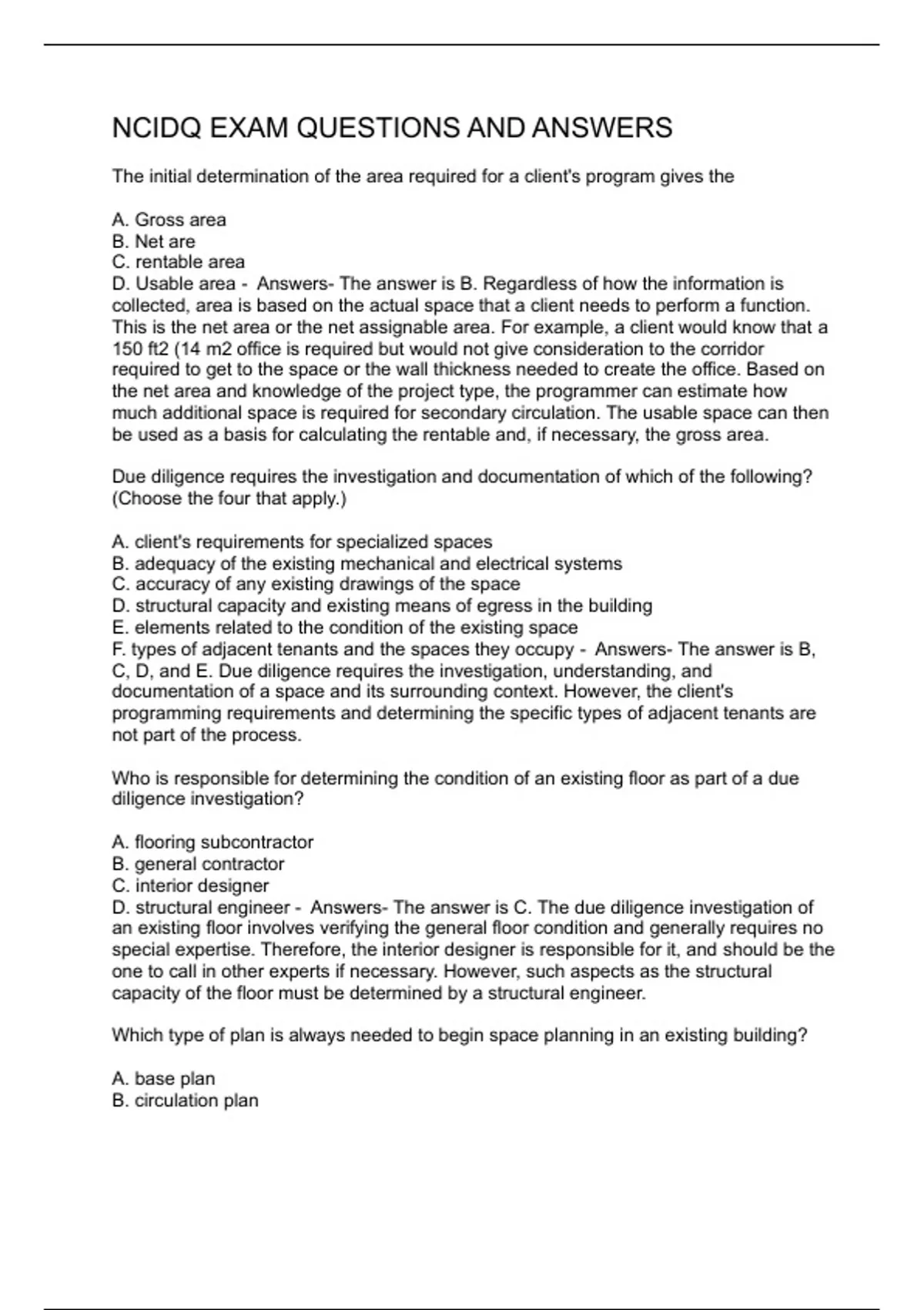 NCIDQ EXAM QUESTIONS AND ANSWERS