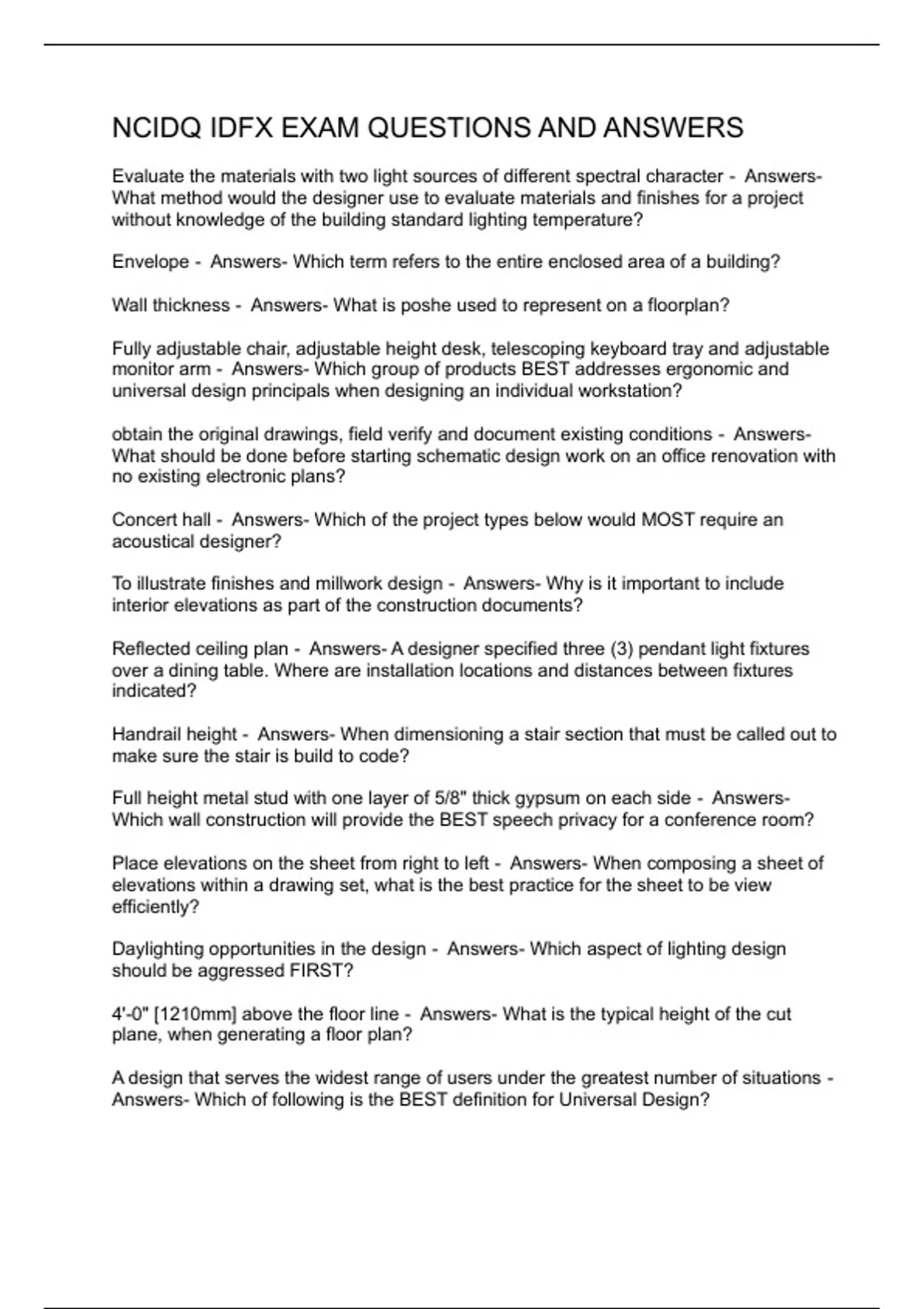 NCIDQ IDFX EXAM QUESTIONS AND ANSWERS