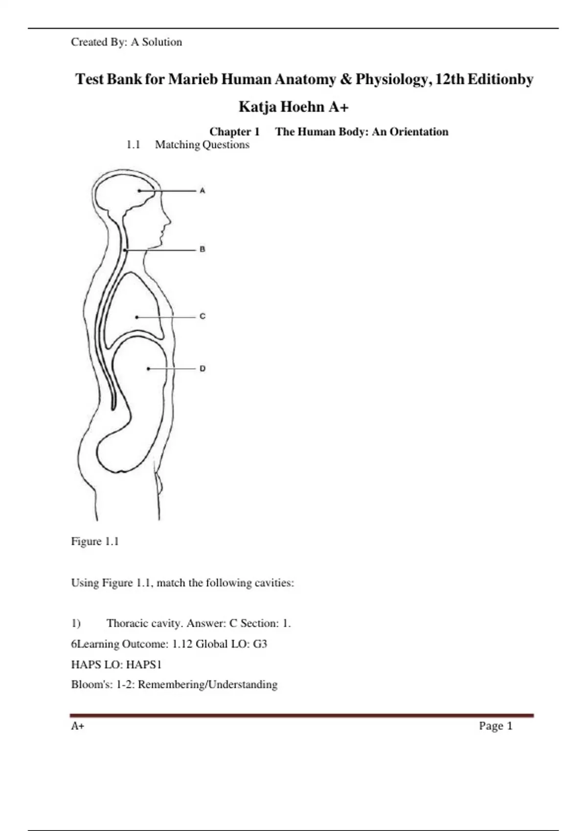 Test Bank for Marieb Human Anatomy & Physiology, 12th Editionby