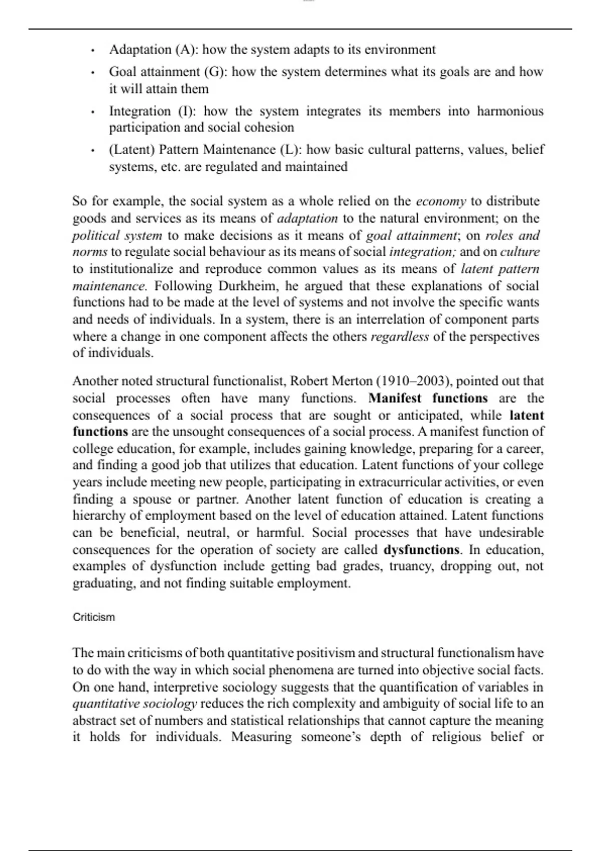 Another noted structural functionalist, Robert Merton (1910–2003), pointed out that