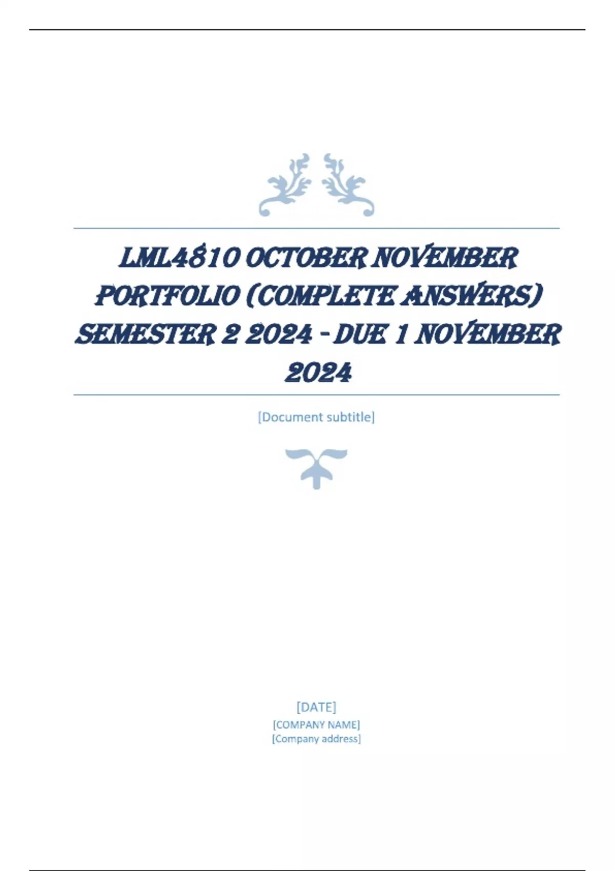 LML4810 OCTOBER NOVEMBER PORTFOLIO (COMPLETE ANSWERS) Semester 2 2024