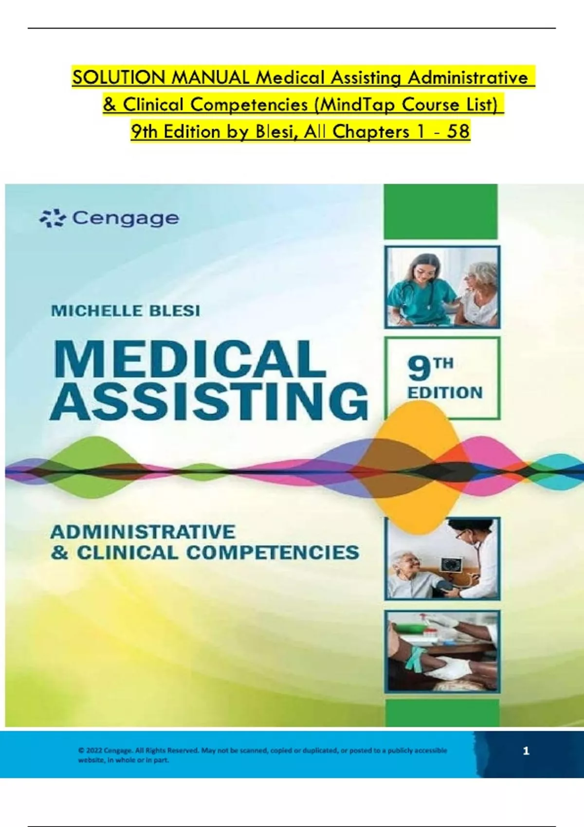 Solution Manual for Medical Assisting Administrative & Clinical Competencies (MindTap Course List) 9th Edition by Michelle Blesi, Verified Chapters 1 - 58, Complete Version