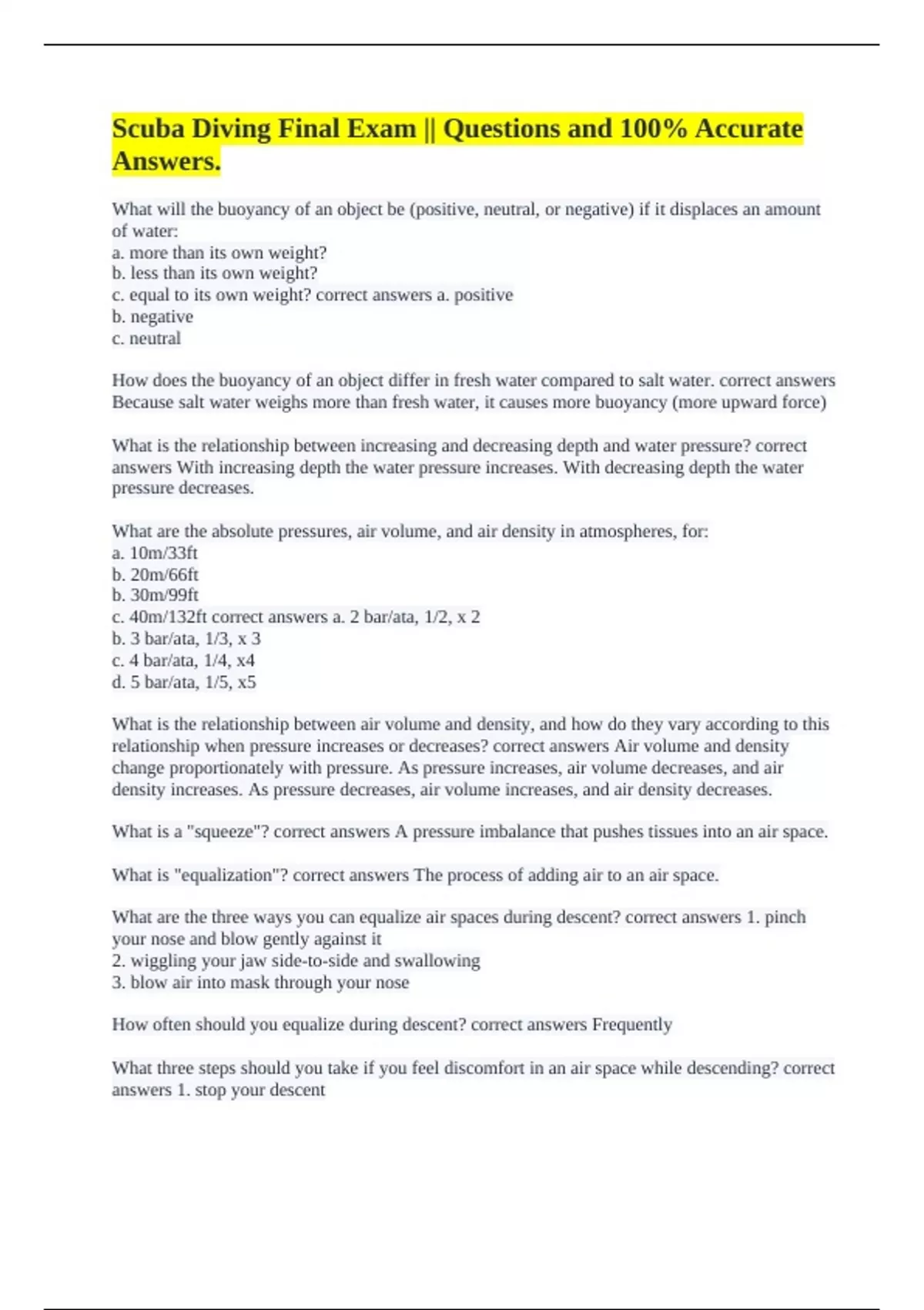 Scuba Diving Final Exam || Questions and 100% Accurate Answers.