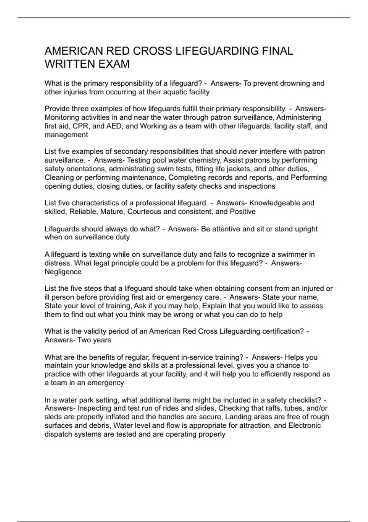 AMERICAN RED CROSS LIFEGUARDING FINAL WRITTEN EXAM