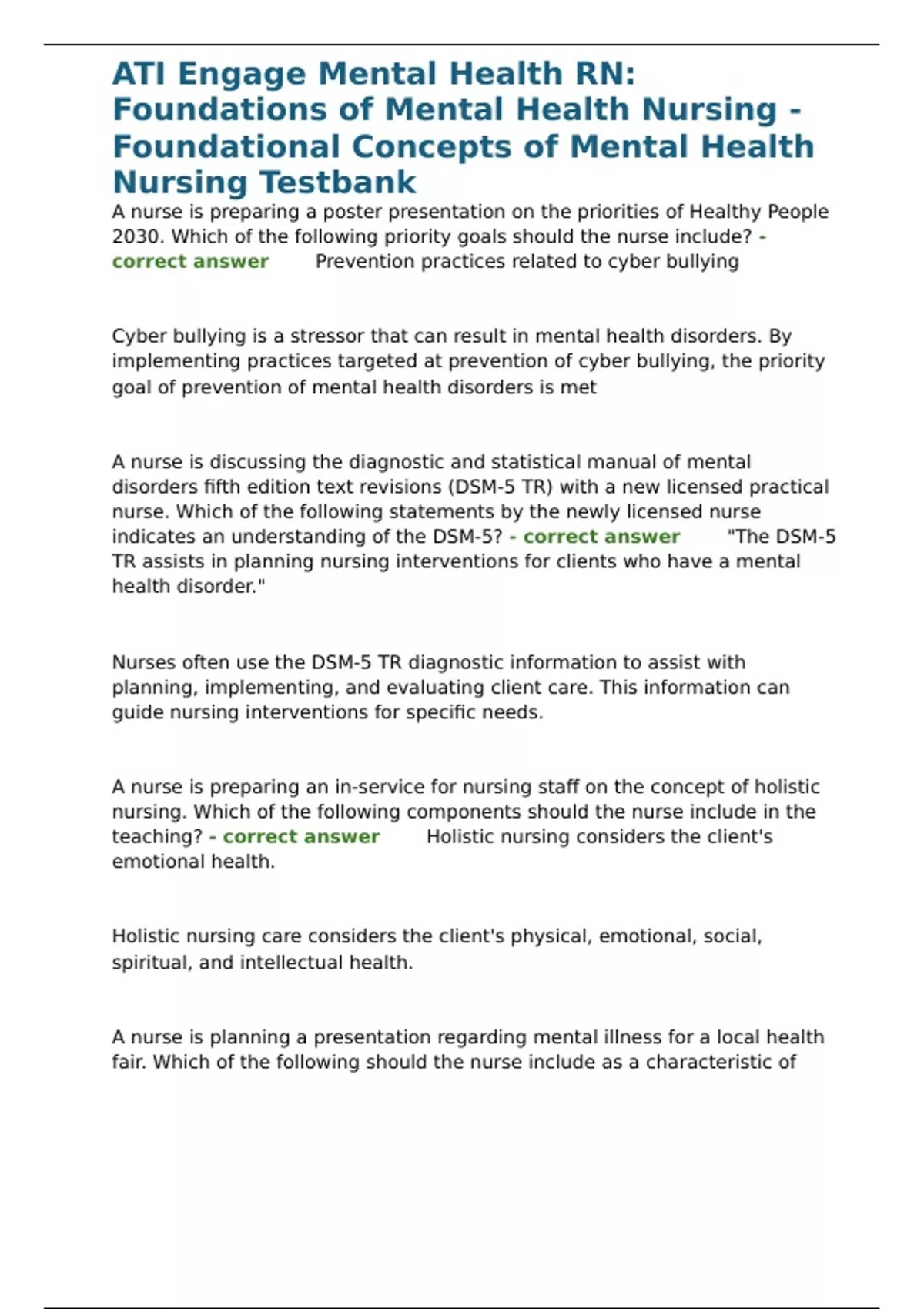 , ATI Engage Mental Health RN: