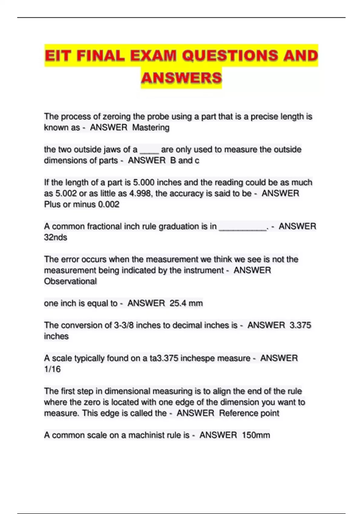 EIT FINAL EXAM QUESTIONS AND ANSWERS...