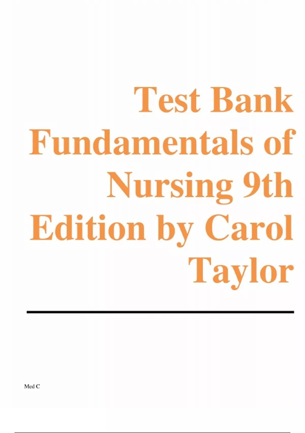 TEST BANK FUNDAMENTALS OF NURSING 9TH EDITION BY CAROL TAYLOR PAMELA LYNN JENNIFER BARTLETT.Chapter 1, Introduction to Nursing An oncology nurse with 15 years of experience, certification in the area of oncology nursing, and a master’s degree is considered to be an expert in her area ...