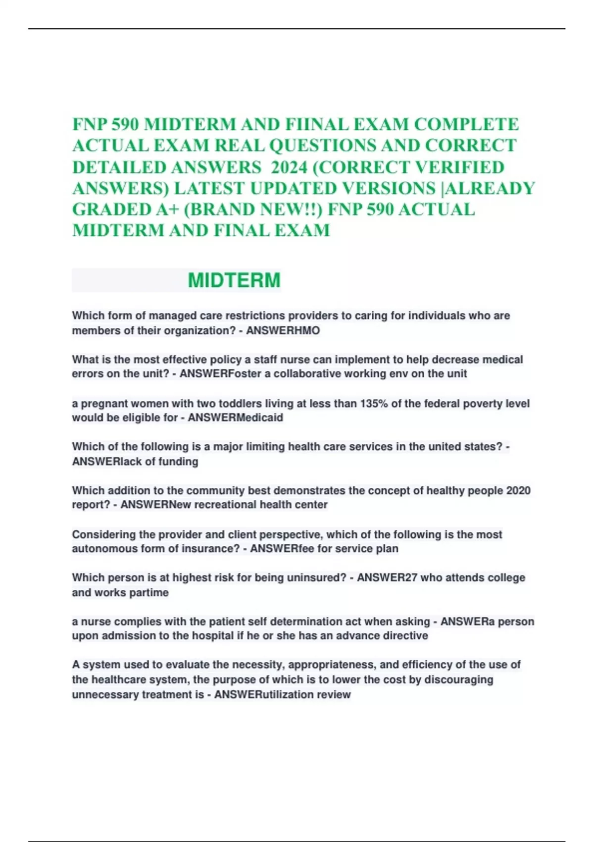 GRADED A+ (BRAND NEW!!) FNP 590 ACTUAL