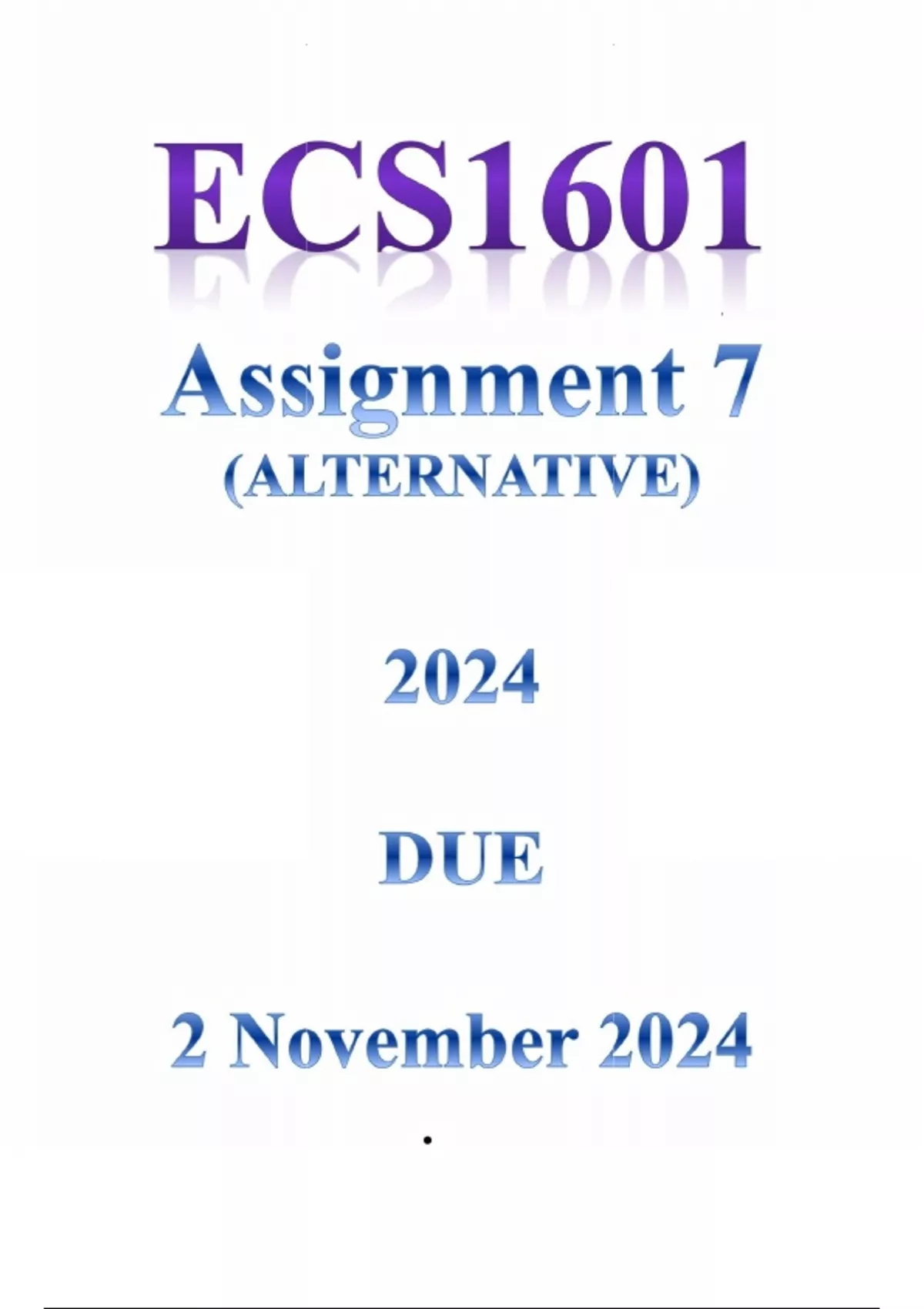ECS1601 Assessment 7 - Alternative 2024 – DUE 2 November 2024 ;100 % TRUSTED workings, Expert Solved, Explanations and Solutions.