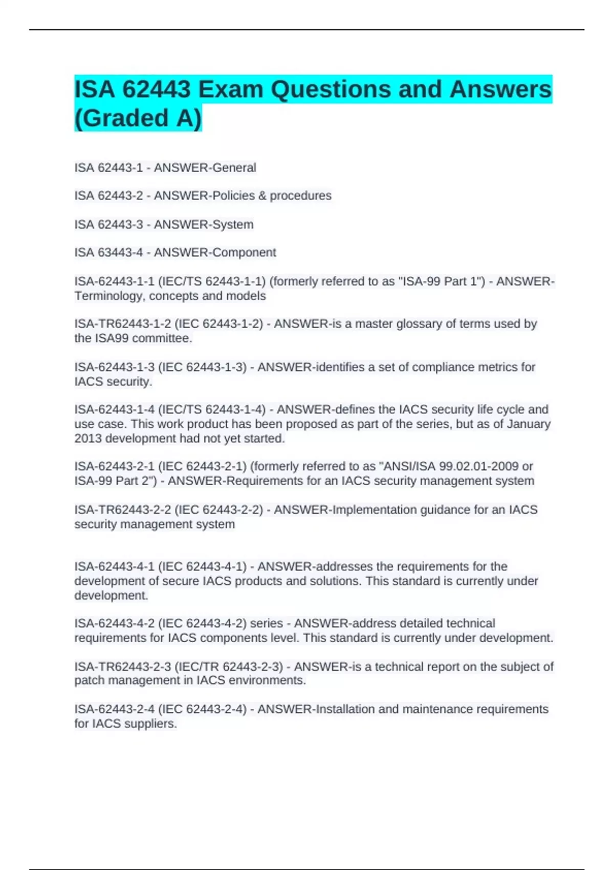 ISA 62443 Exam Questions and Answers