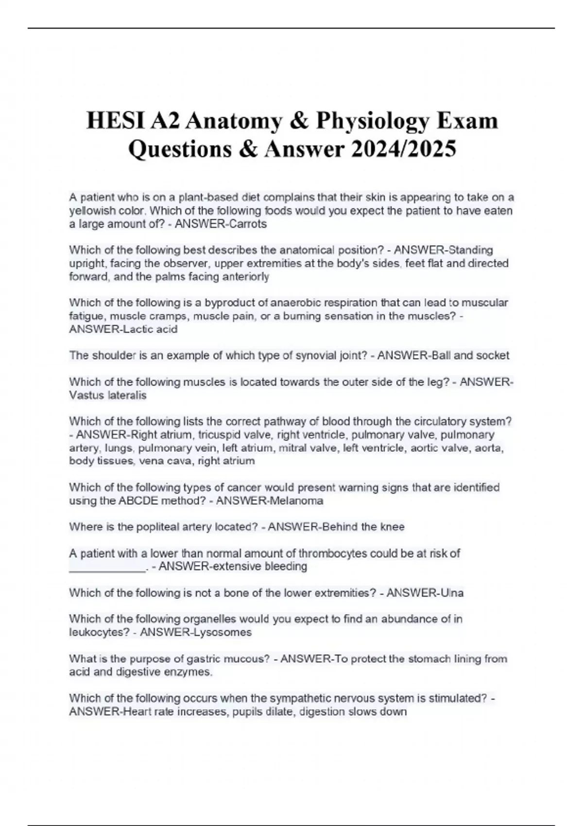 HESI A2 Anatomy & Physiology Exam Questions & Answer 2024/2025