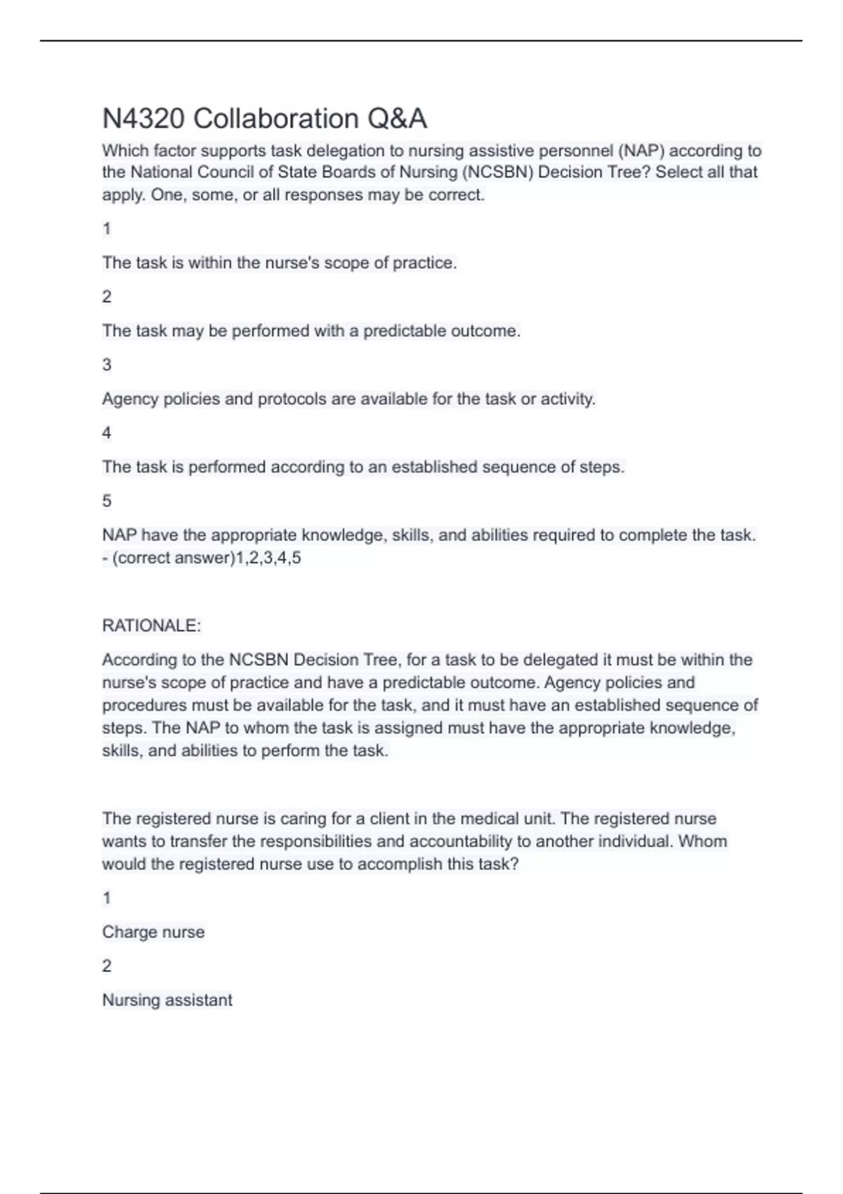 According to the NCSBN Decision Tree, for a task to be delegated it must be within the
