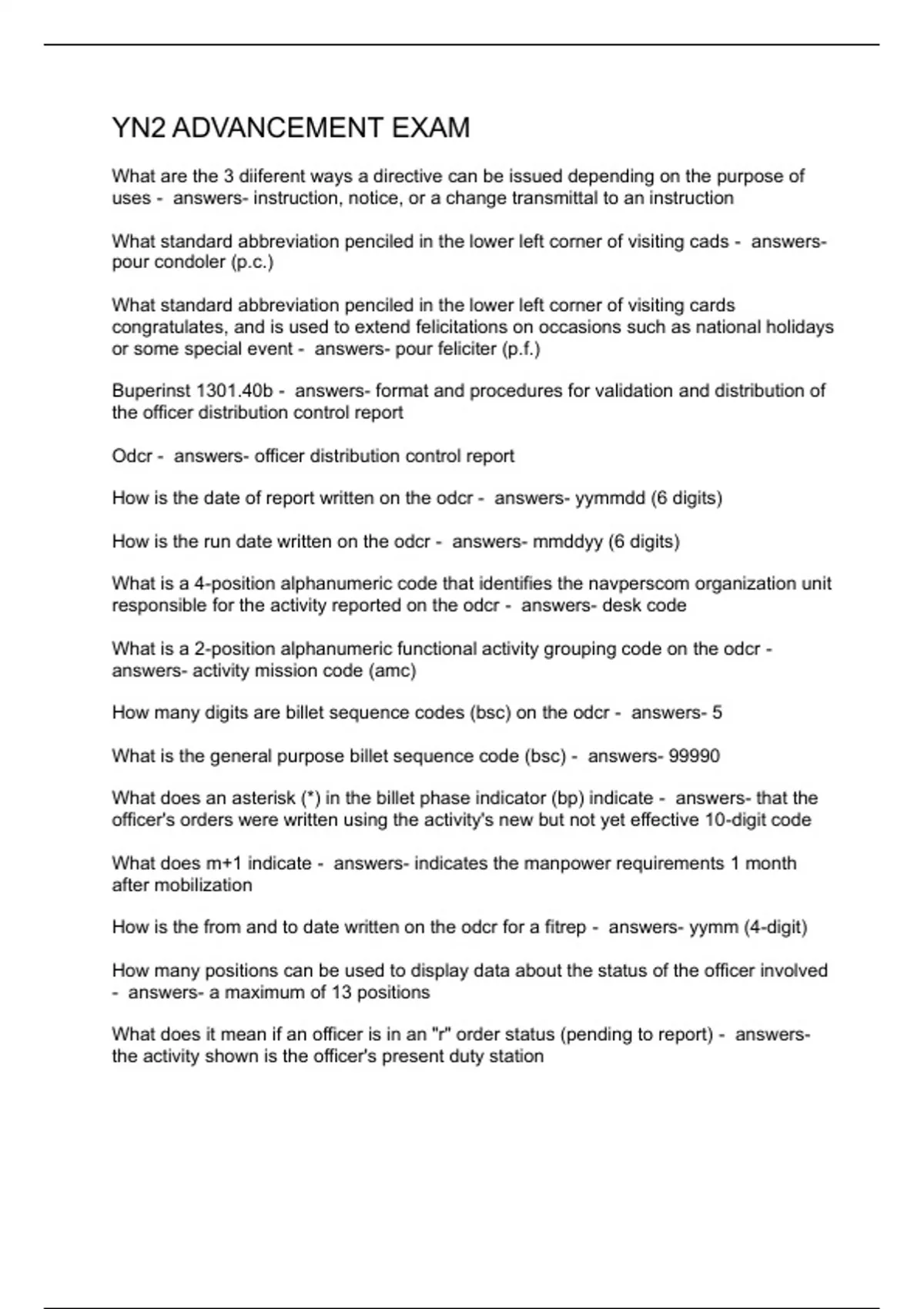 YN2 ADVANCEMENT EXAM