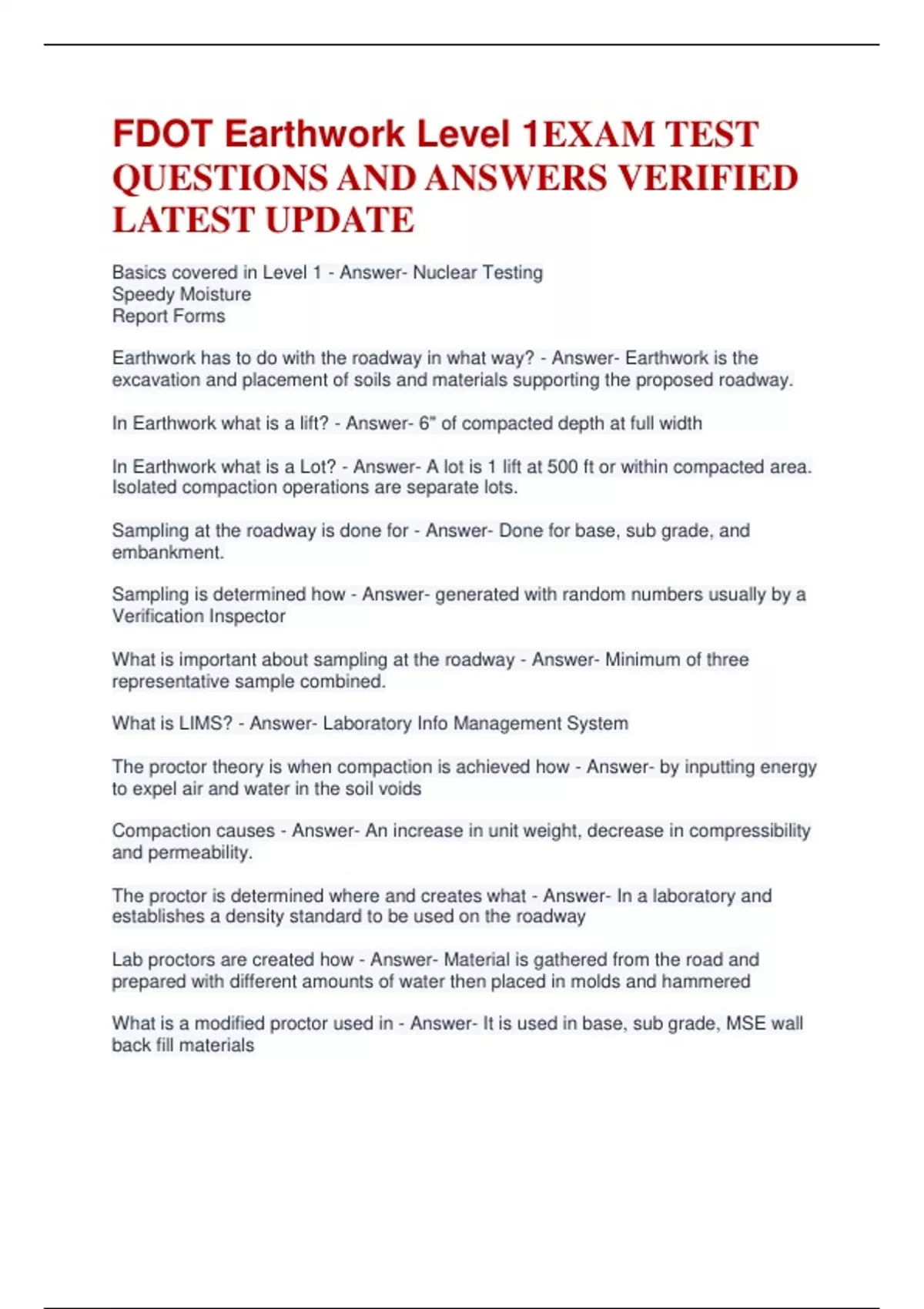 What is a modified proctor used in - Answer- It is used in base, sub grade, MSE wall