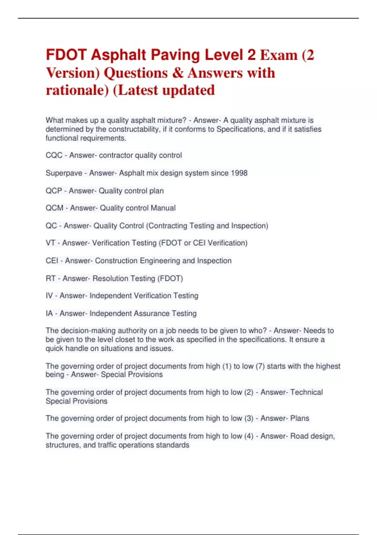 VT - Answer- Verification Testing (FDOT or CEI Verification)