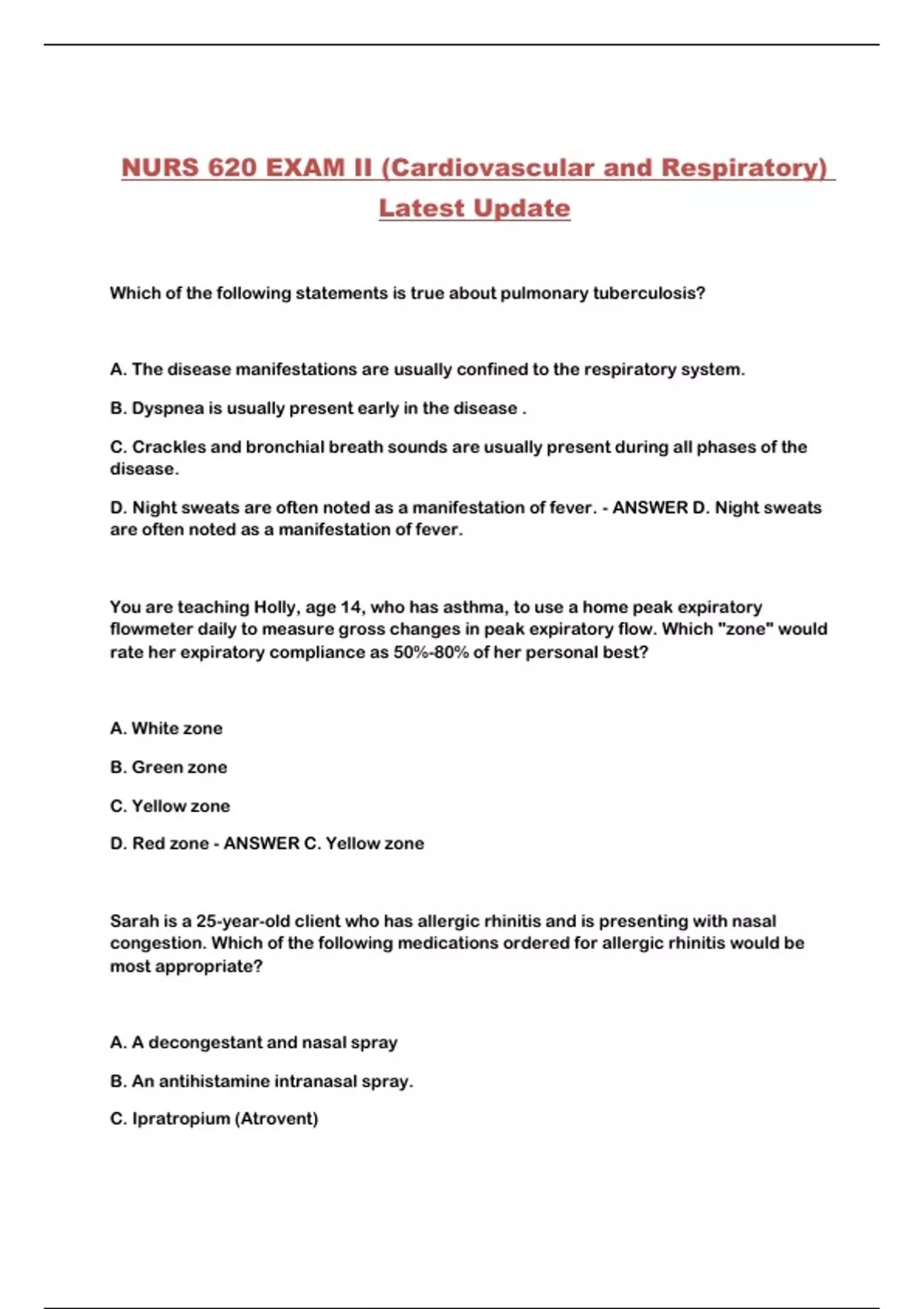 ,D. Omalizumab (Xolair) - ANSWER A. A decongestant and nasal spray