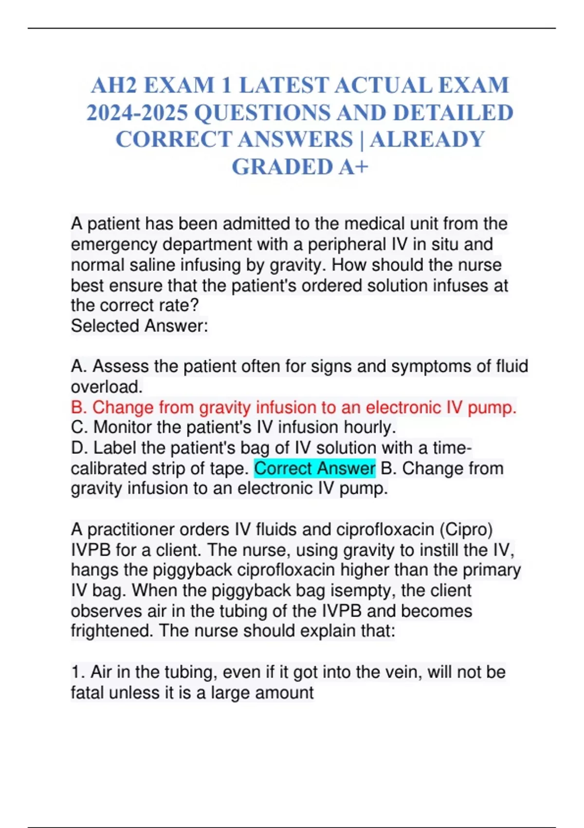 AH2 EXAM 1 LATEST ACTUAL EXAM