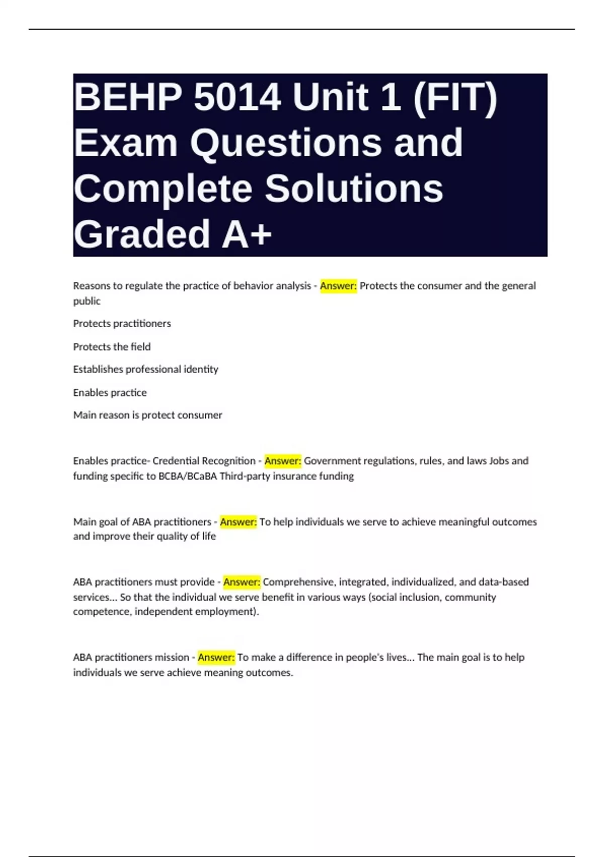 ABA practitioners must provide - Answer: Comprehensive, integrated, individualized, and data-based