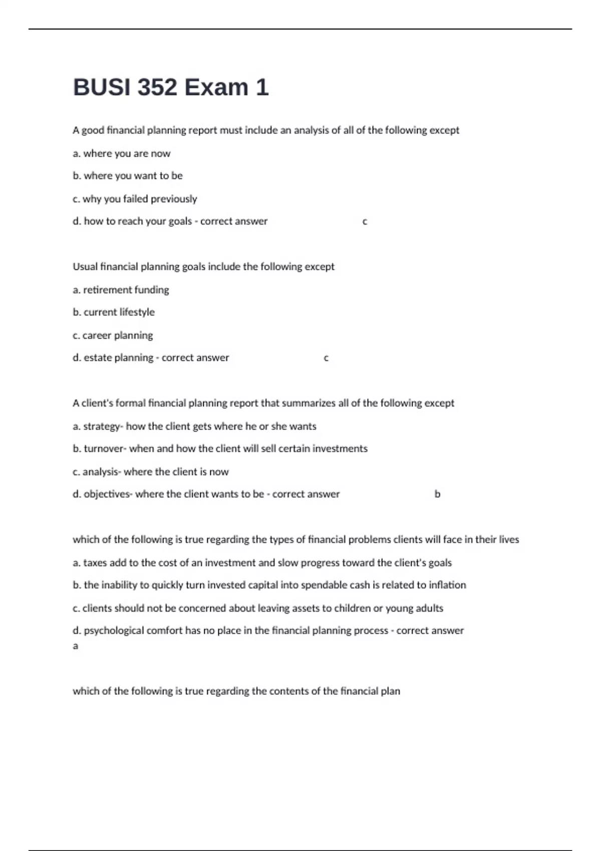 d. estate planning - correct answer c