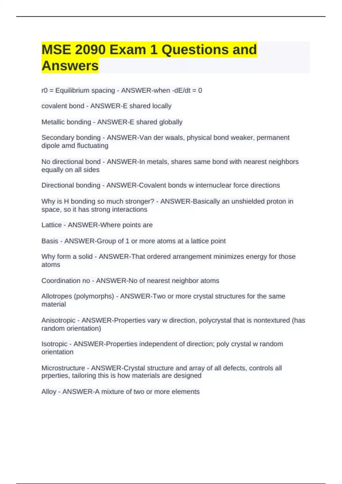 Why form a solid - ANSWER-That ordered arrangement minimizes energy for those