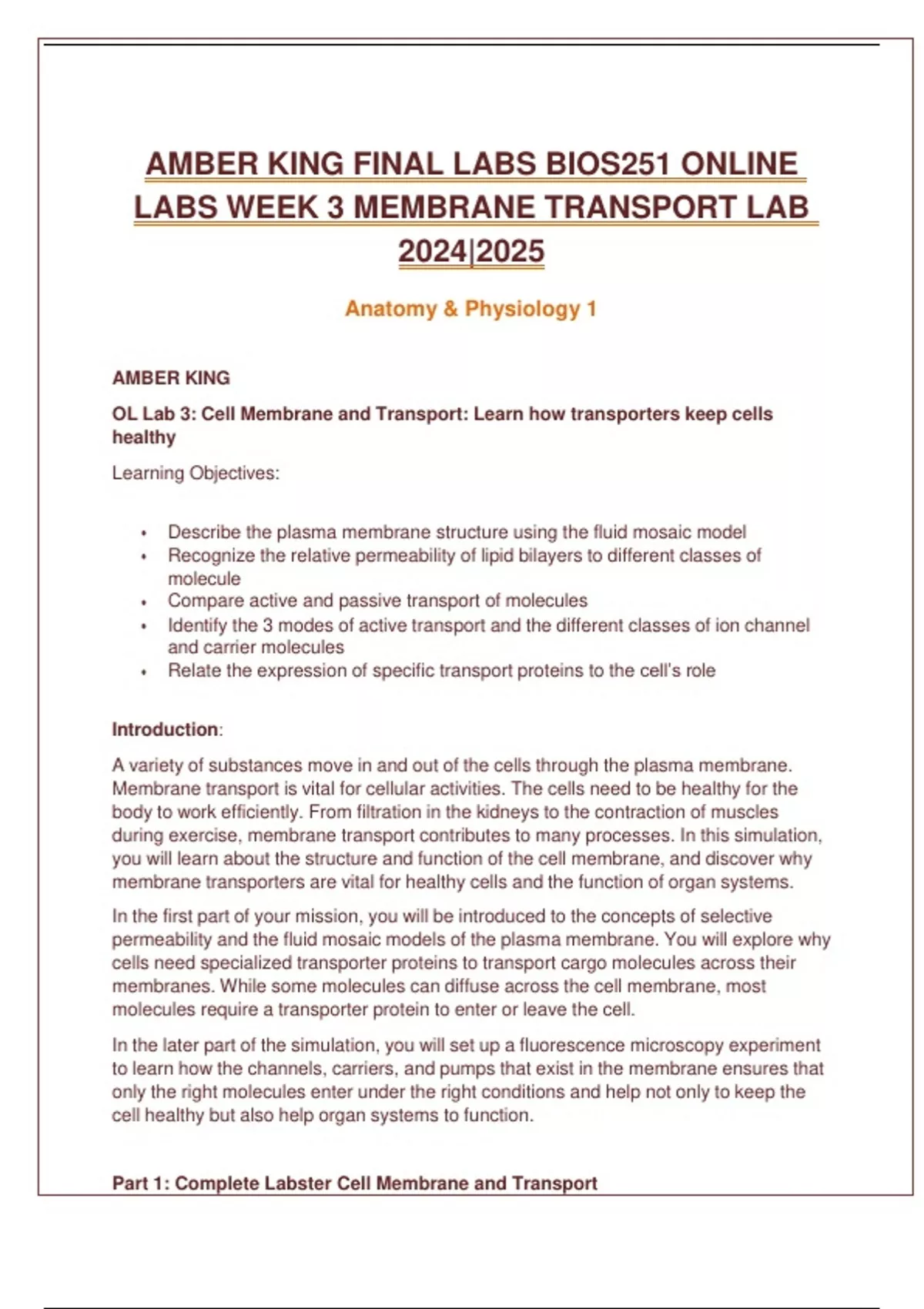 AMBER KING FINAL LABS BIOS251 ONLINE