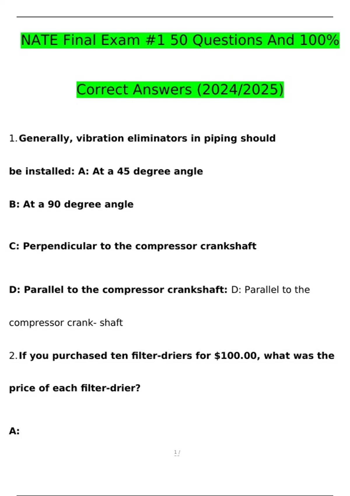 NATE Final Exam #1 | 50 Questions with 100% Correct Answers
