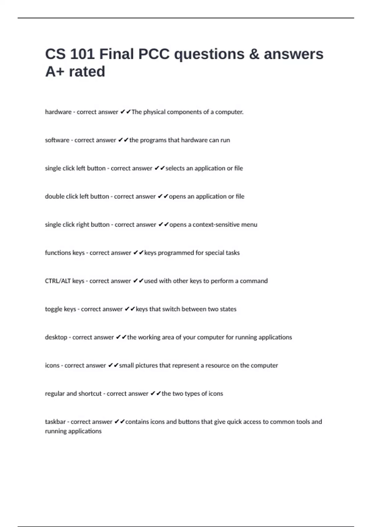 CS 101 Final PCC questions & answers A+ rated