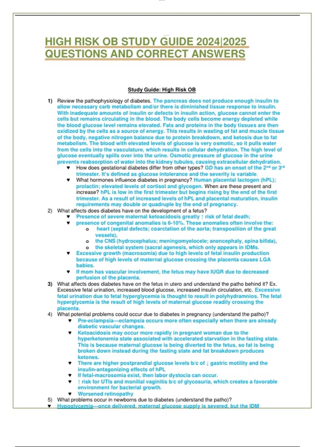 HIGH RISK OB STUDY GUIDE 2024|2025