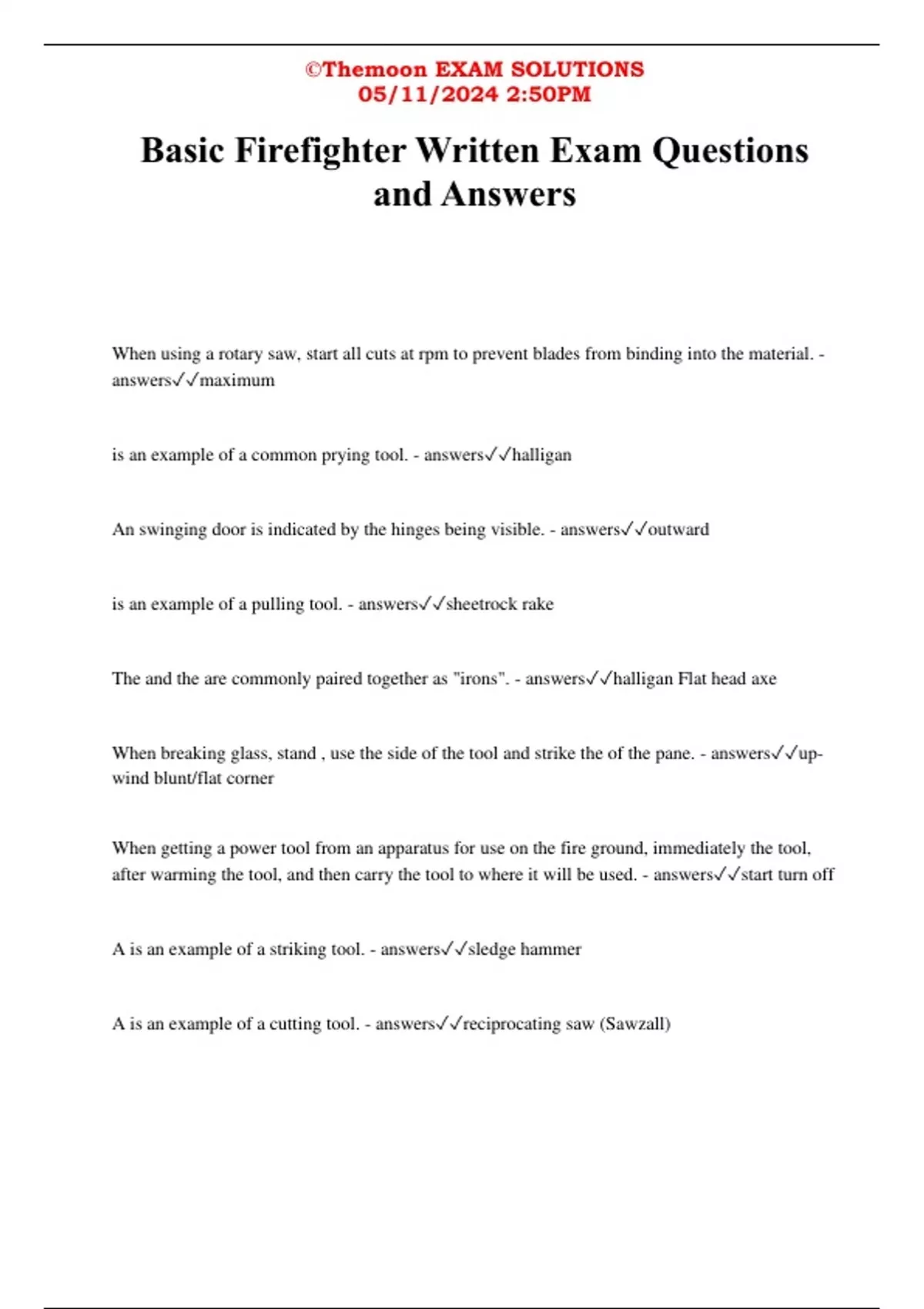 Basic Firefighter Written Exam Questions