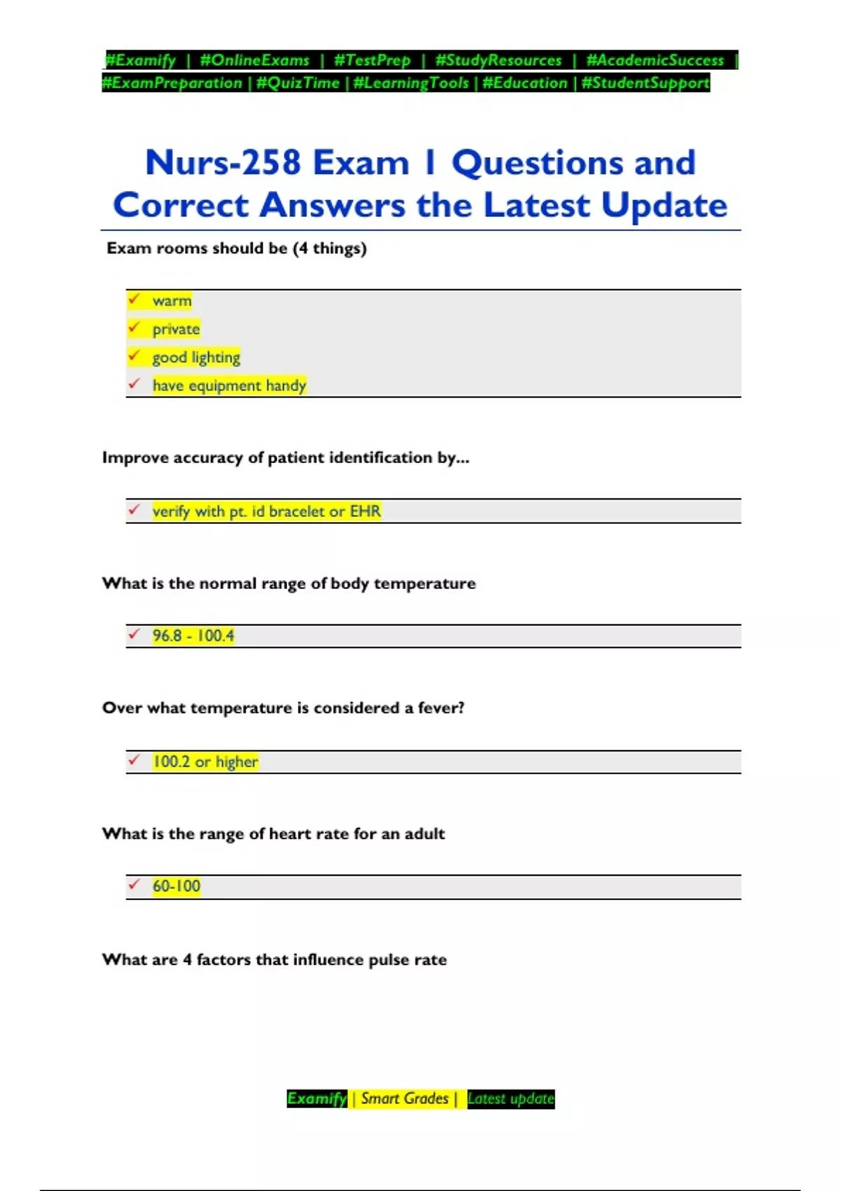 Nurs-258 Exam 1 Questions and Correct Answers the Latest Update