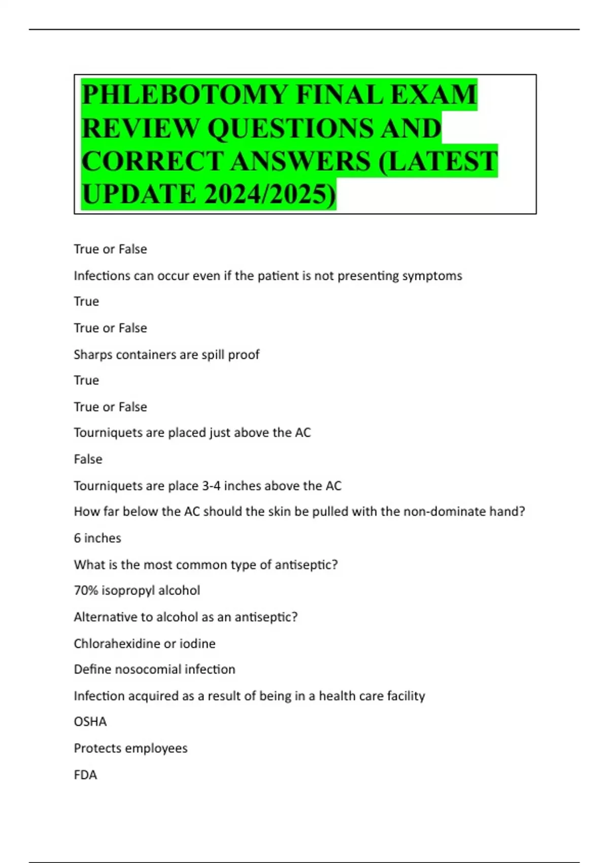 CORRECT ANSWERS (LATEST