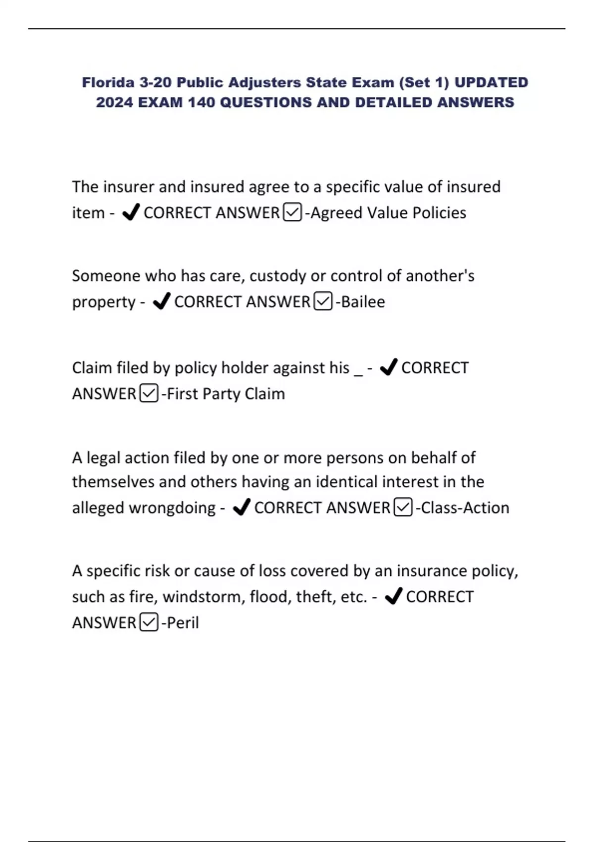 item - ✔️CORRECT ANSWER✅-Agreed Value Policies