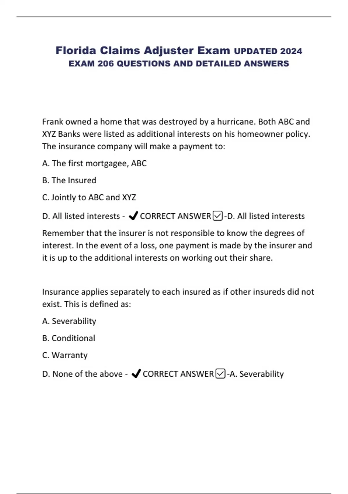 D. None of the above - ✔️CORRECT ANSWER✅-A. Severability