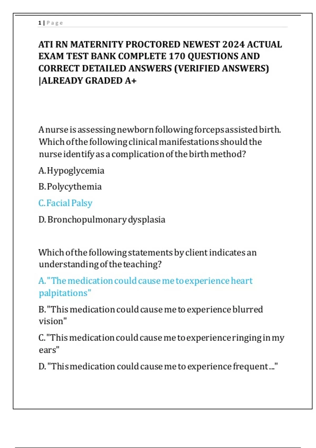 EXAM TEST BANK COMPLETE 170 QUESTIONS AND