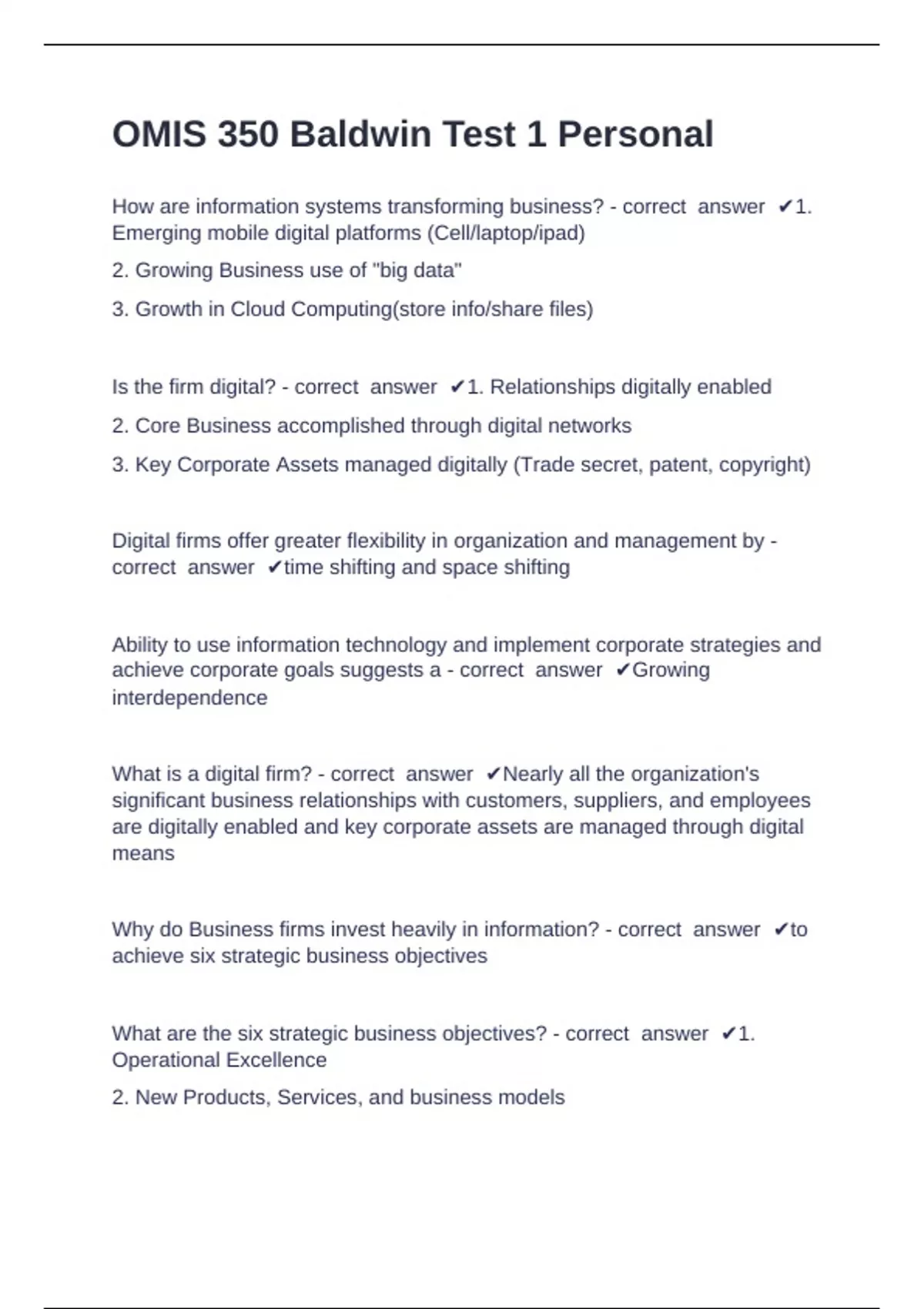 What is a digital firm? - correct answer ✔Nearly all the organization's