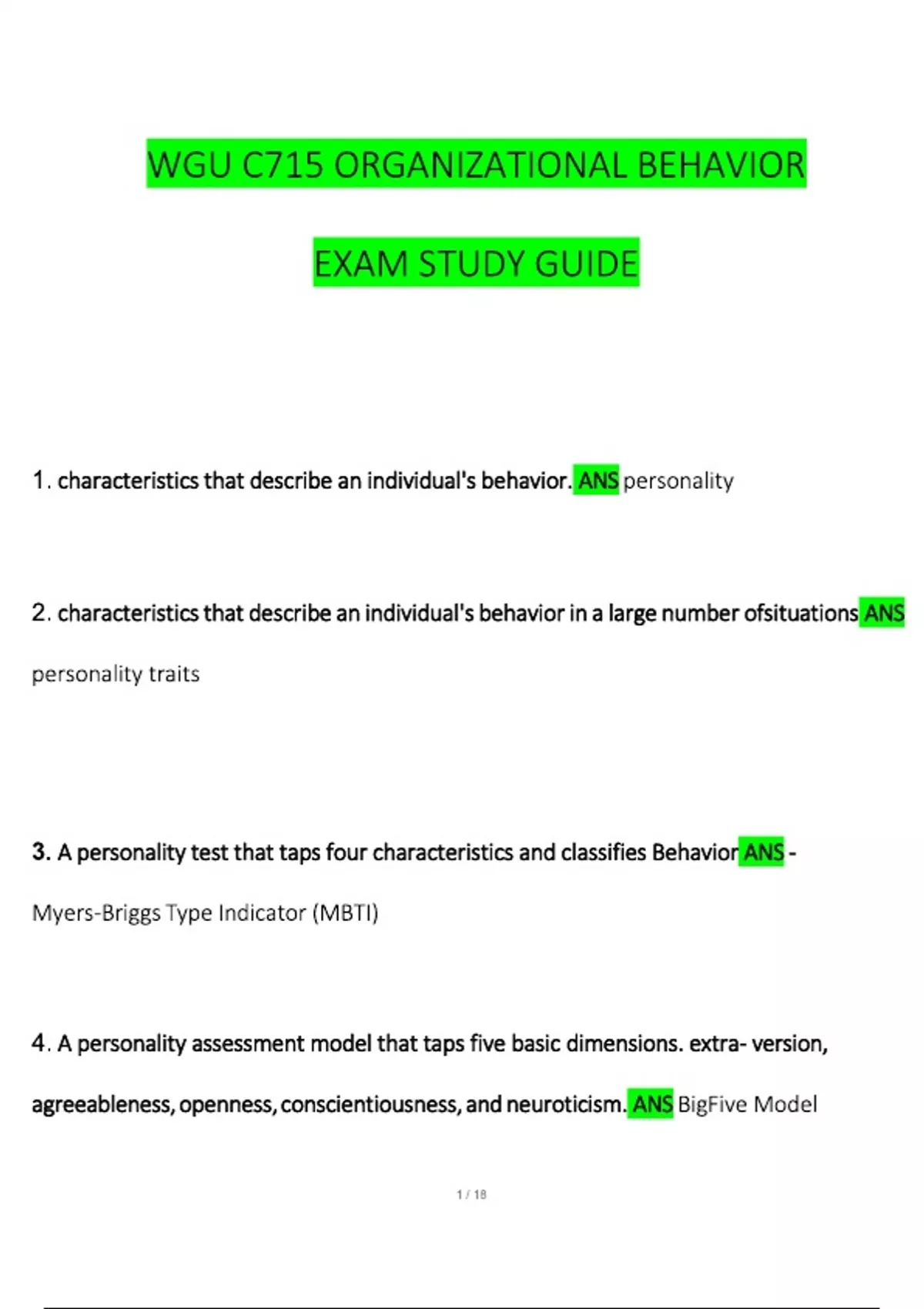 WGU C715 ORGANIZATIONAL BEHAVIOR EXAM STUDY GUIDE Questions and Verified Rationalized Answers, 100% Guarantee Pass WGU C715 ORGANIZATIONAL BEHAVIOR EXAM STUDY GUIDE Questions and Verified Rationalized Answers, 100% Guarantee Pass WGU C715 ORGANIZATIONAL BEHAVIOR EXAM STUDY GUIDE Questions and Verified Rationalized Answers, 100% Guarantee Pass WGU C715 ORGANIZATIONAL BEHAVIOR EXAM STUDY GUIDE Questions and Verified Rationalized Answers, 100% Guarantee Pass
