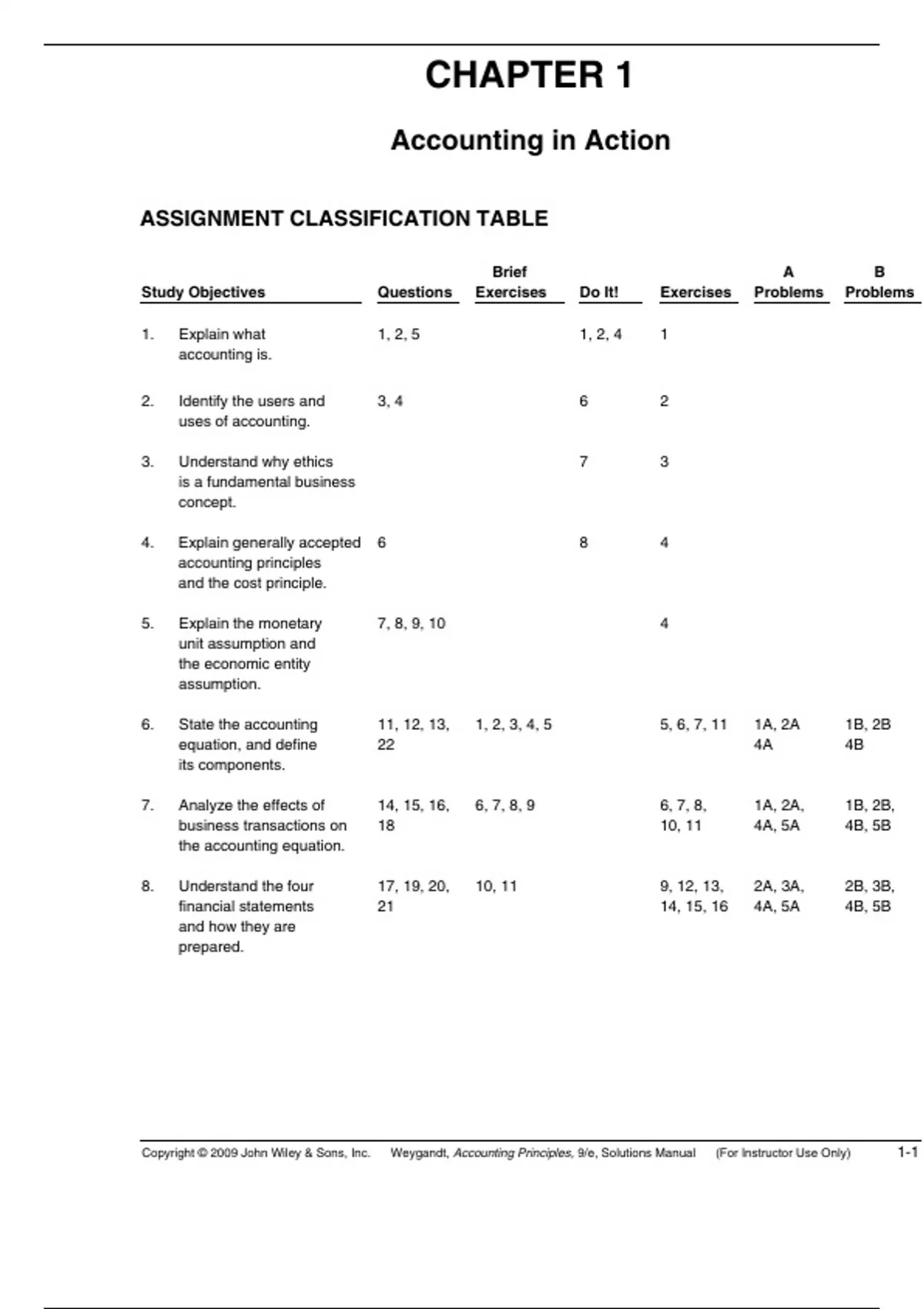 Copyright © 2009 John Wiley & Sons, Inc. Weygandt, Accounting Principles, 9/e, Solutions Manual (For Instructor Use Only) 1-1