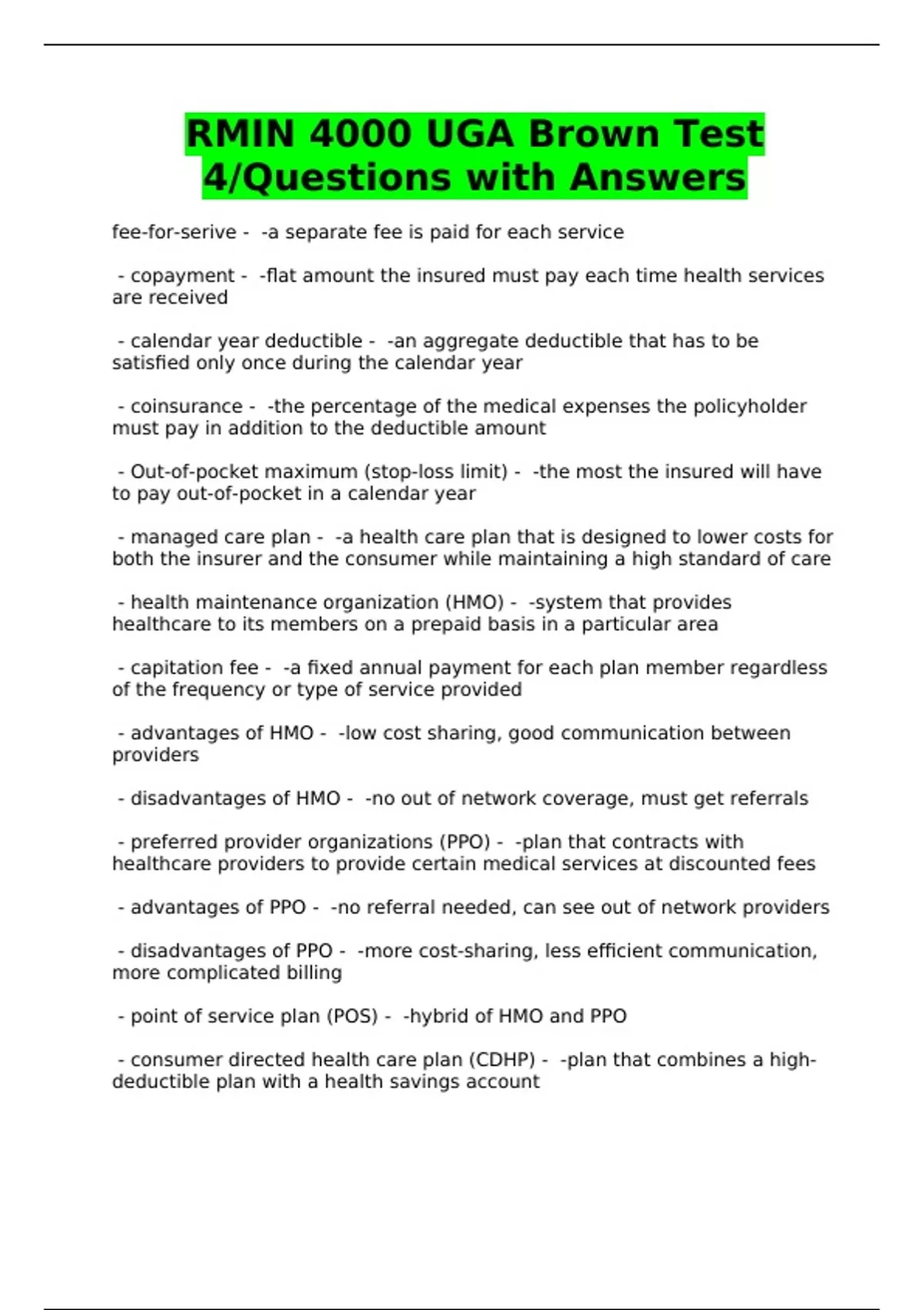 RMIN 4000 UGA Brown Test 4/Questions with Answers