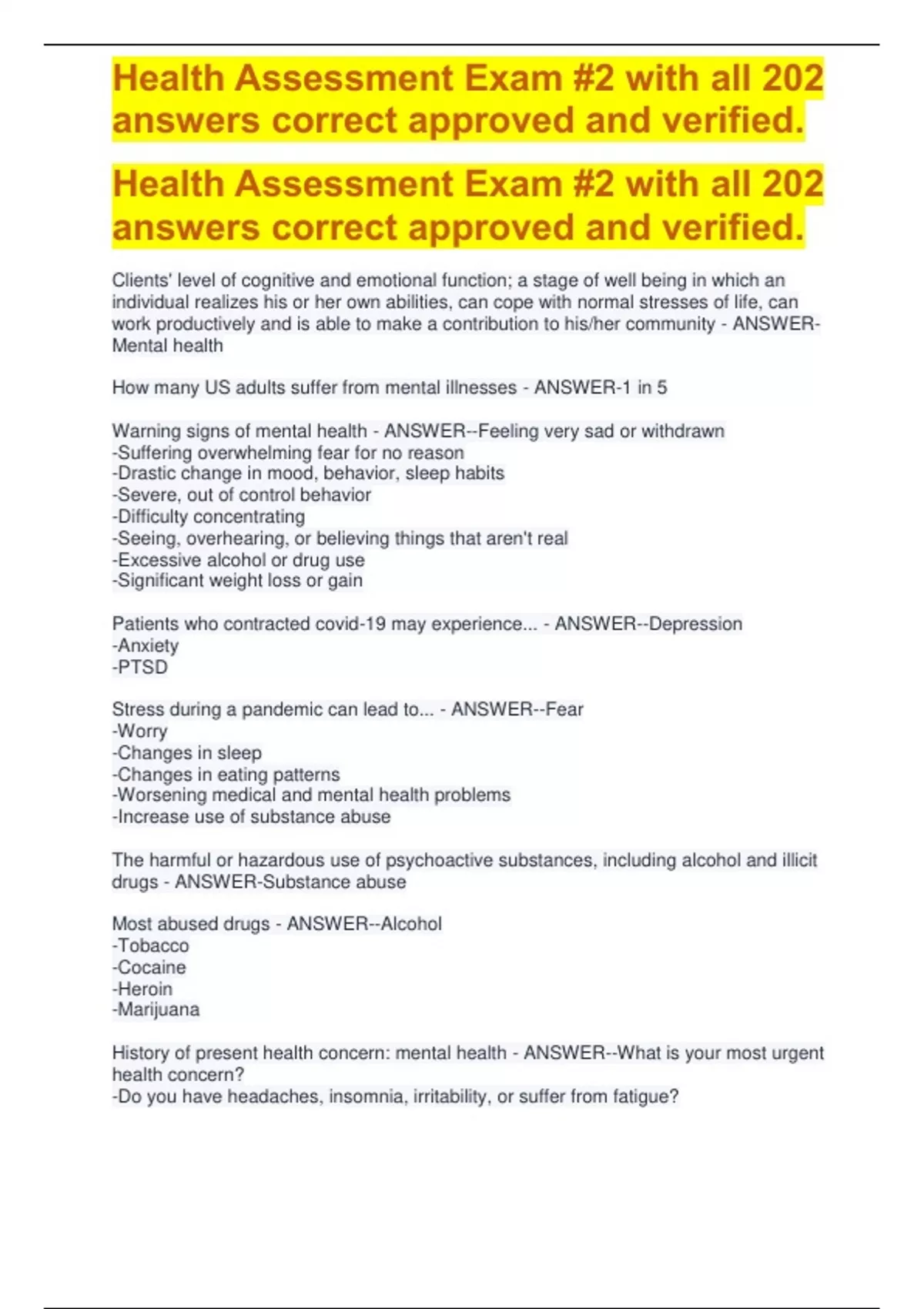 Health Assessment Exam #2 with all 202 answers correct approved and verified.