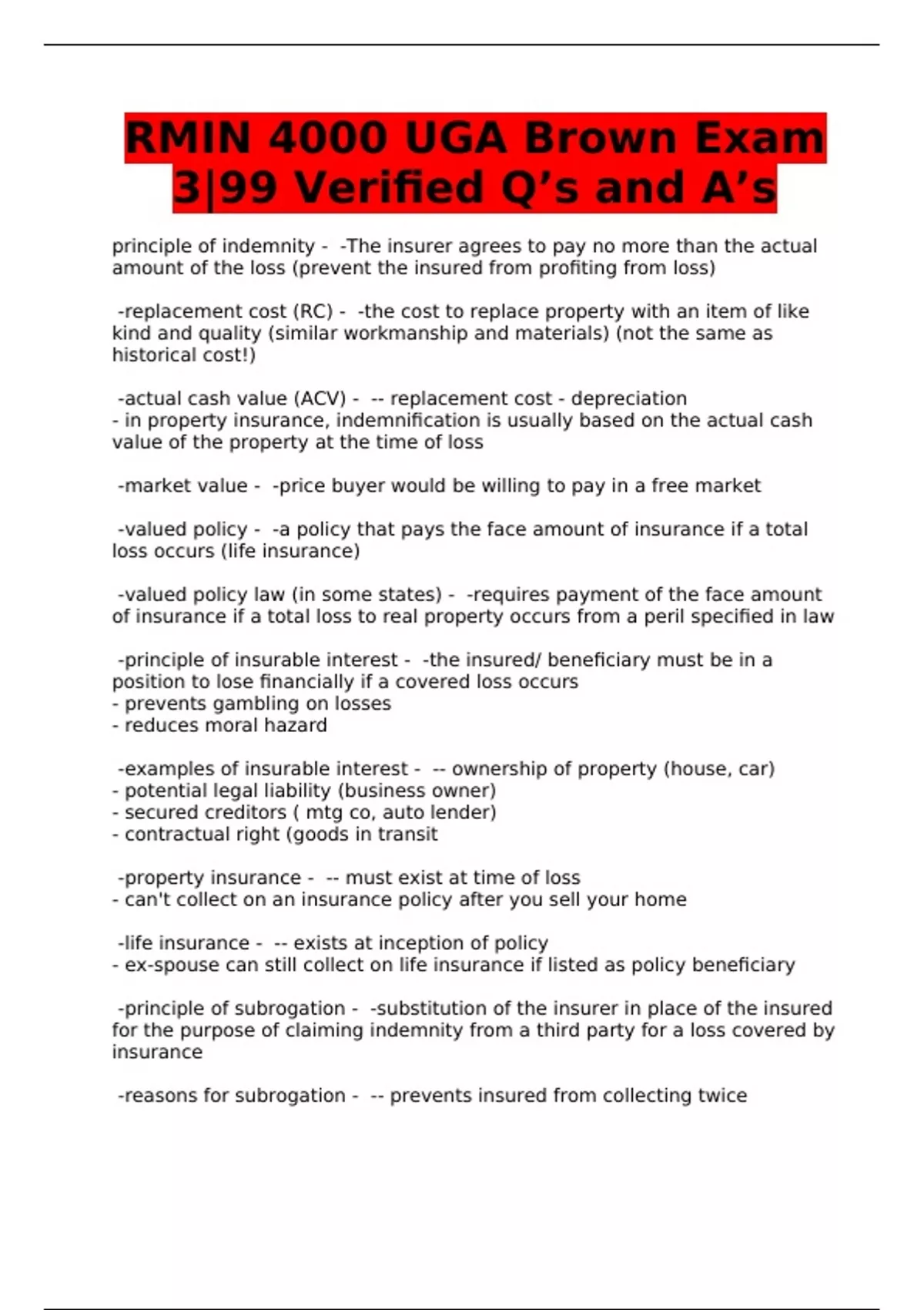 principle of indemnity - -The insurer agrees to pay no more than the actual