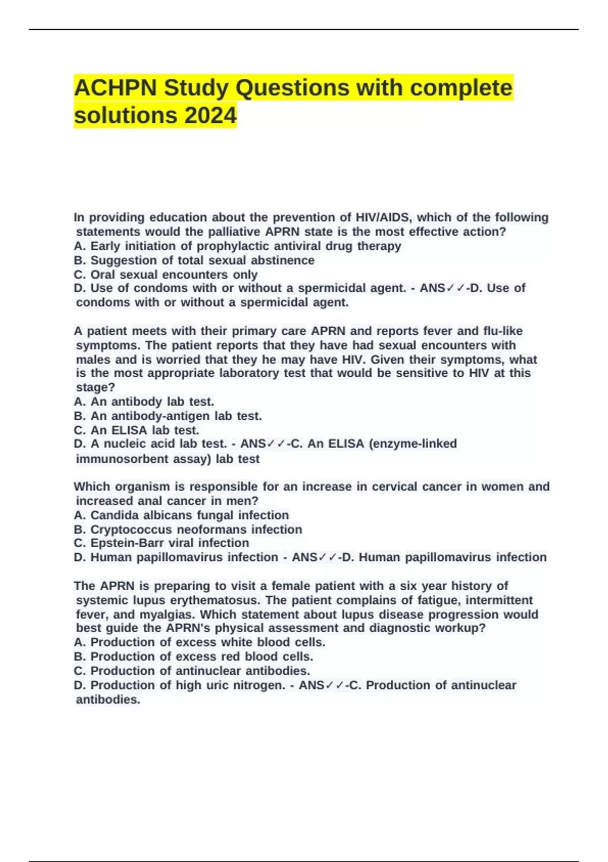 ACHPN Study Questions with complete