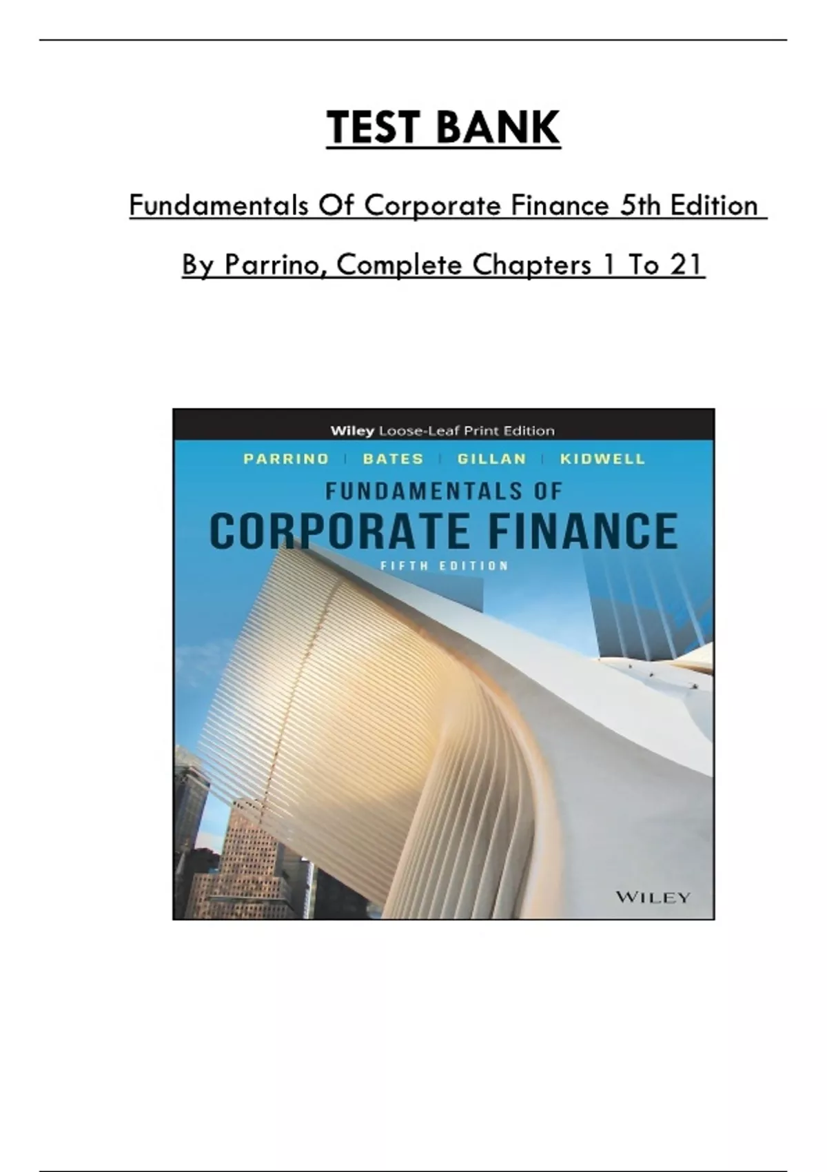 Test Bank For Fundamentals Of Corporate Finance 5th Edition By Parrino, Consists Of 21 Complete Chapters, ISBN: 978-1119795438
