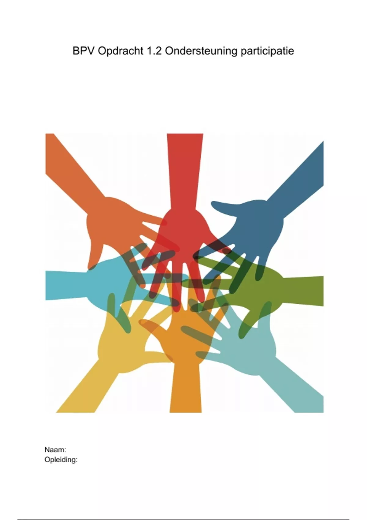 BPV Opdracht 1.2 Ondersteuning participatie Alle criteria staan in de opdracht verwerkt.